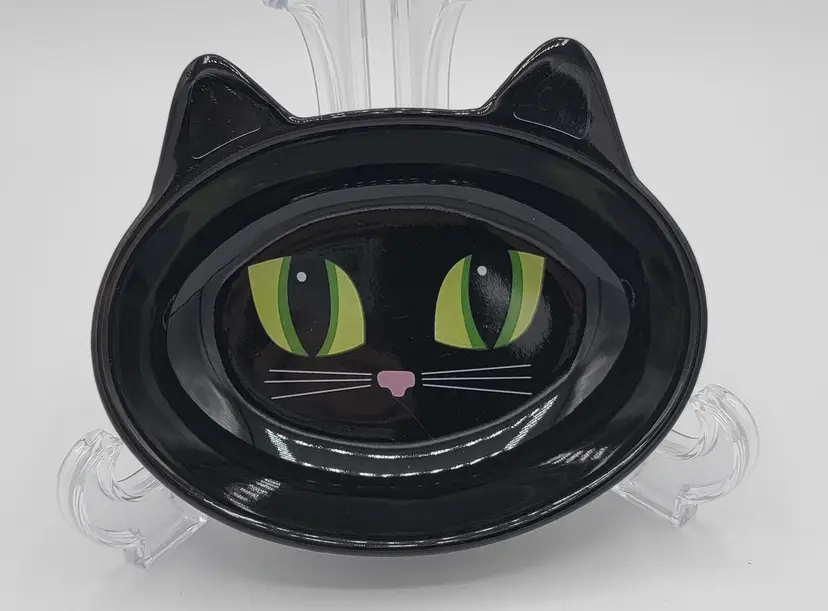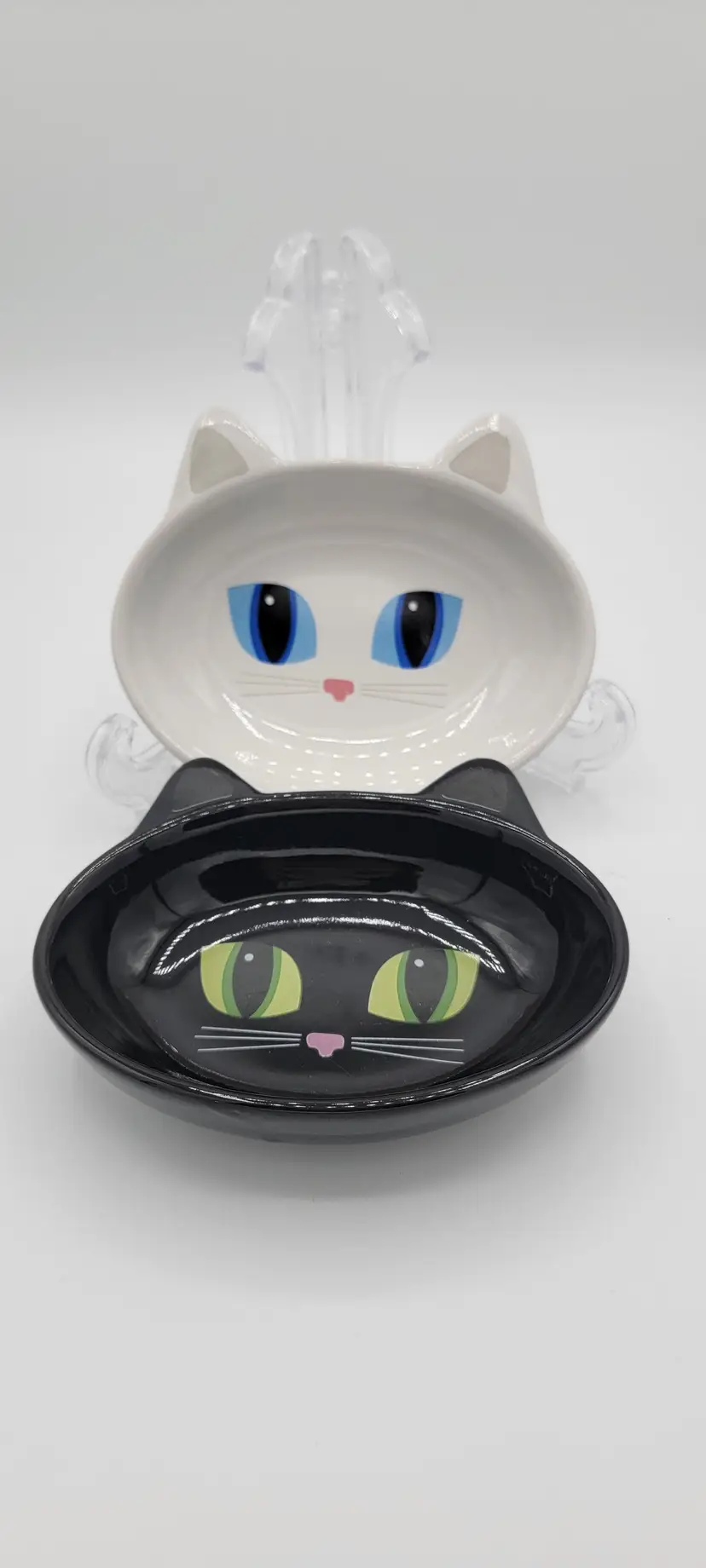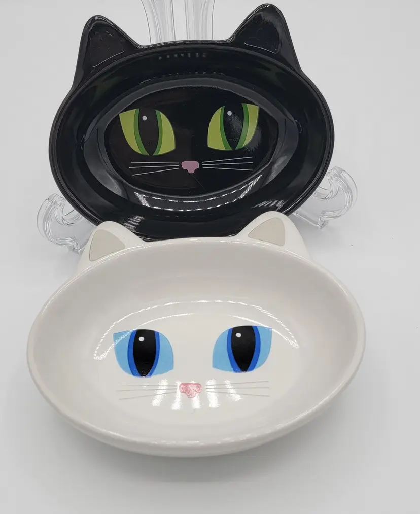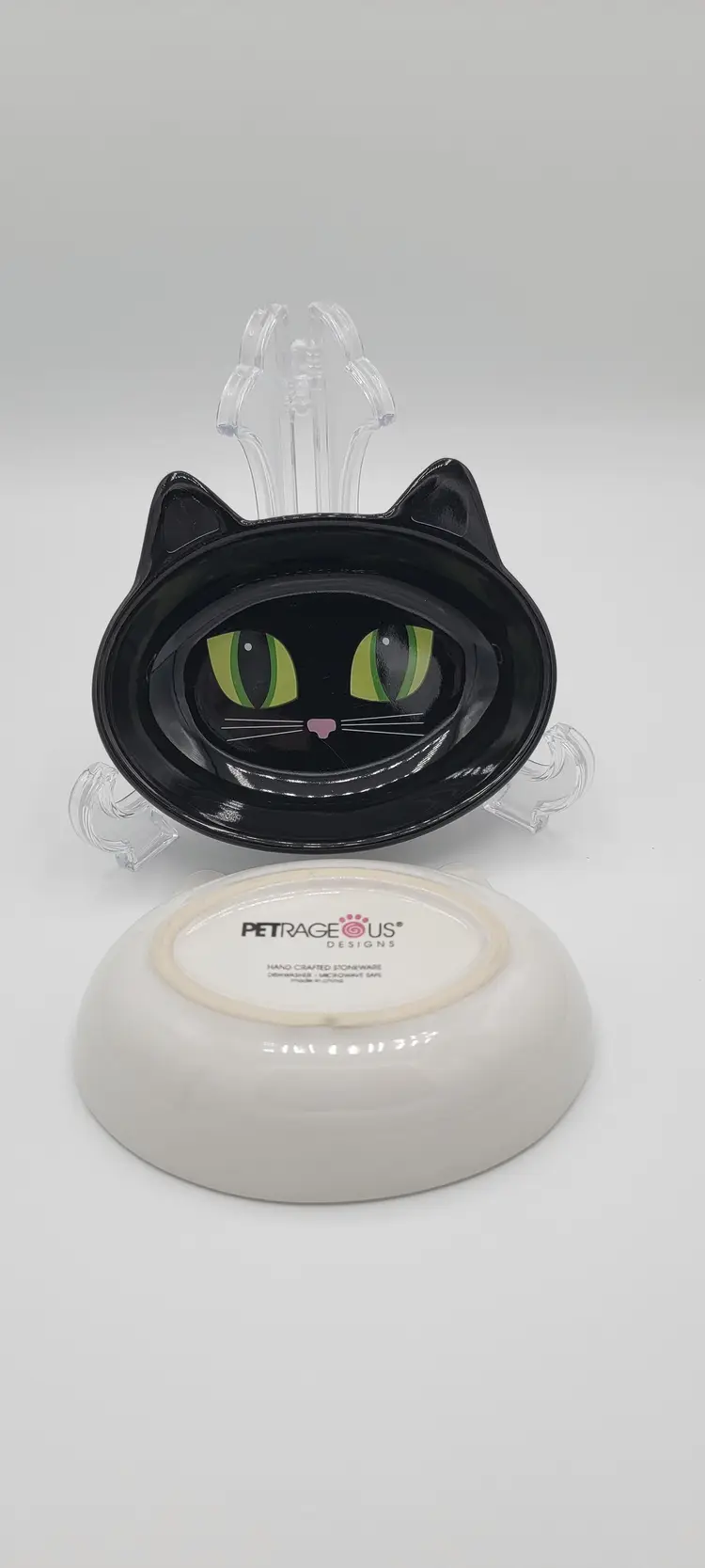 Pre-owned PetRageous Design Black and White Ceramic Set Cat Food Bowl Trinket.