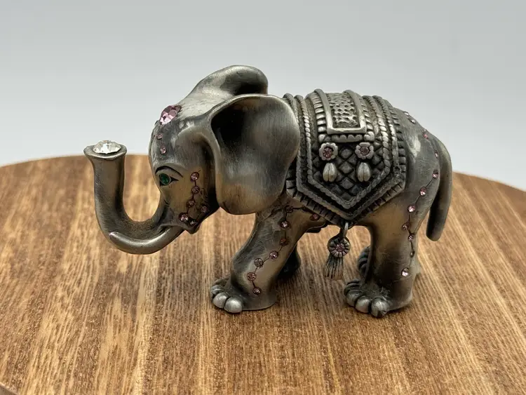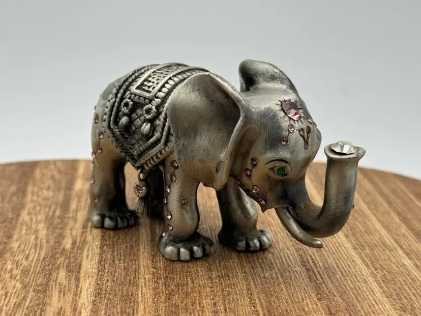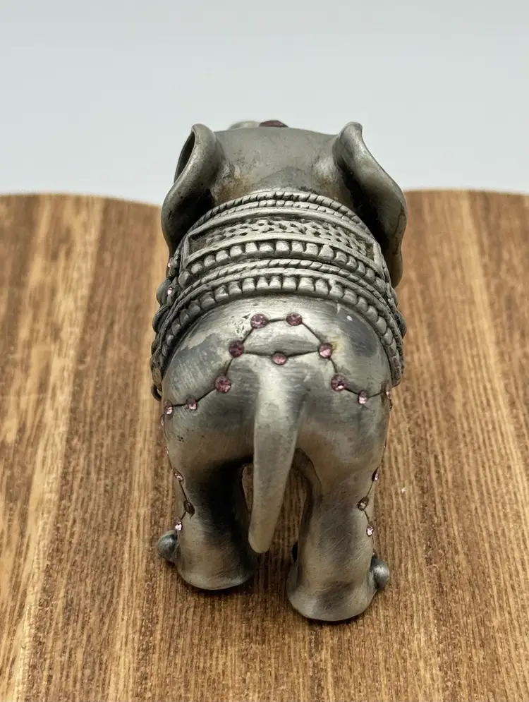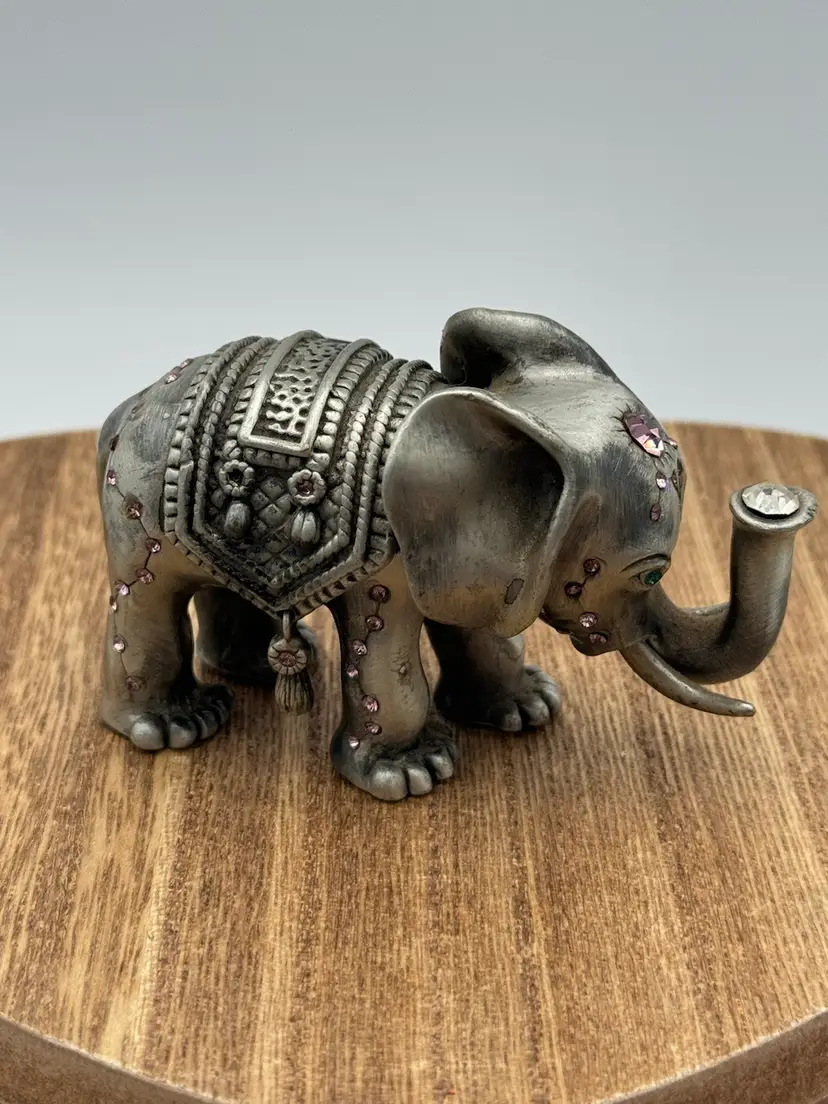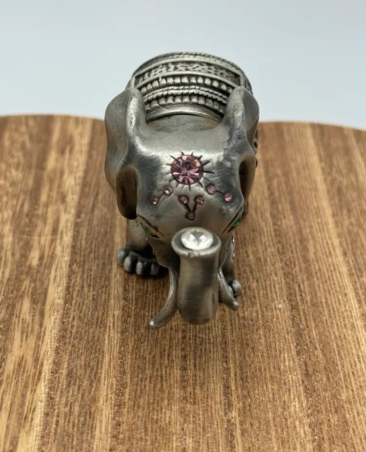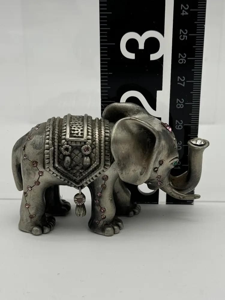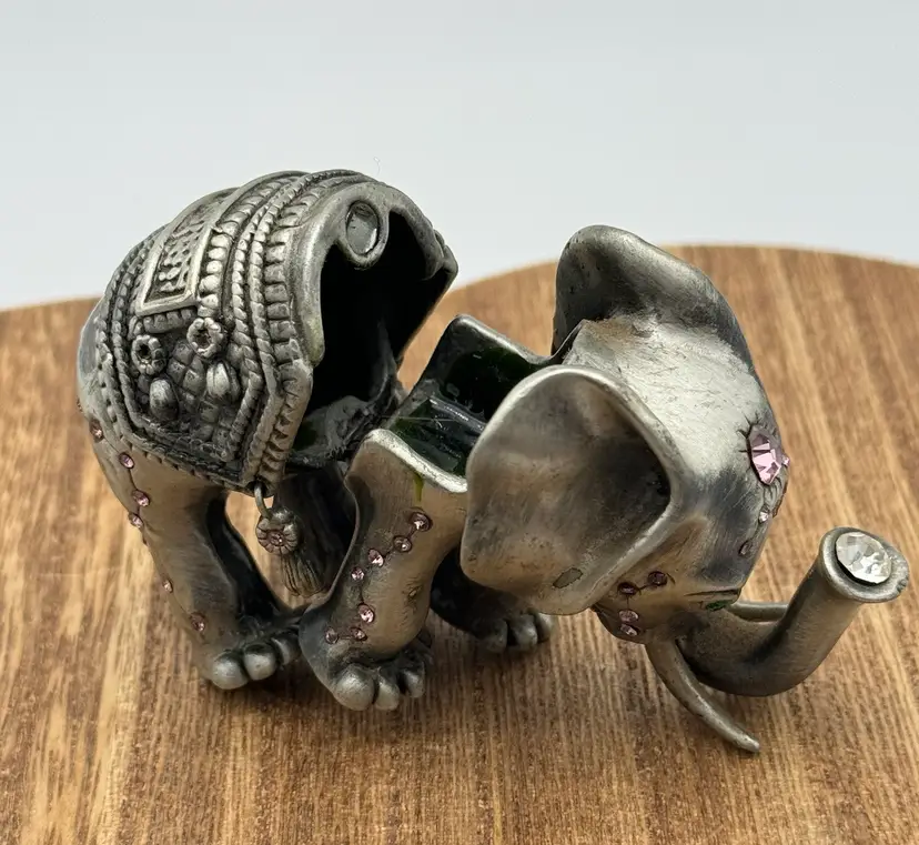 This is a beautiful elephant trinket box. The jewels are beautiful especially the one in the trunk. Please ask all questions before buying. Thanks!