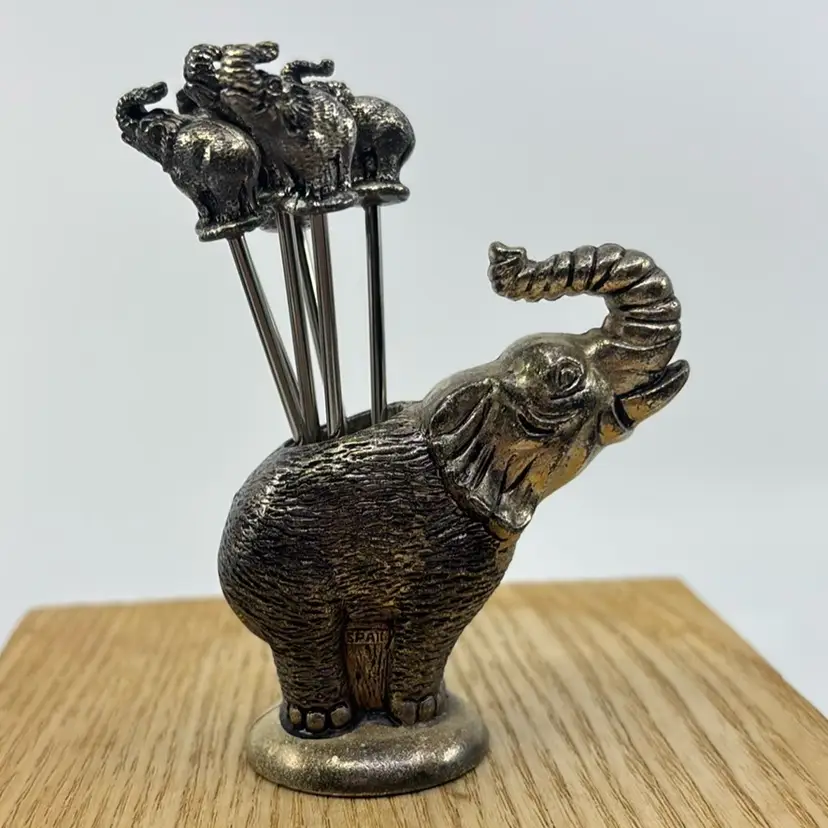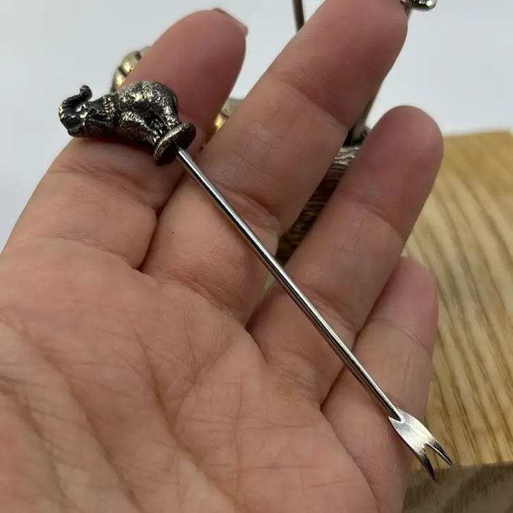 Pewter Elephant Vintage 7pc Cocktail Fork Set Made In Spain 4”