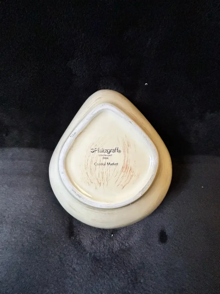 This Pfaltzgraff Central Market stoneware salad bowl features an artichoke shape and a multi-color Central Market pattern. It was manufactured in China between 2003-2005 and is now discontinued. The dishwasher-safe bowl is part of the Central Market product line, making it perfect for all occasions with its vegetable-themed design