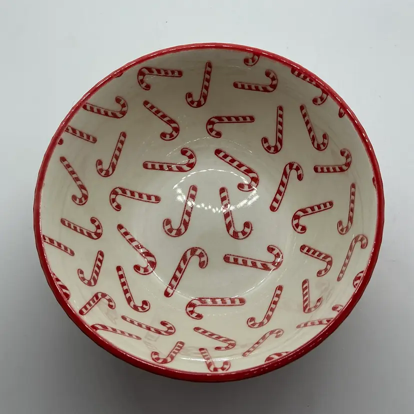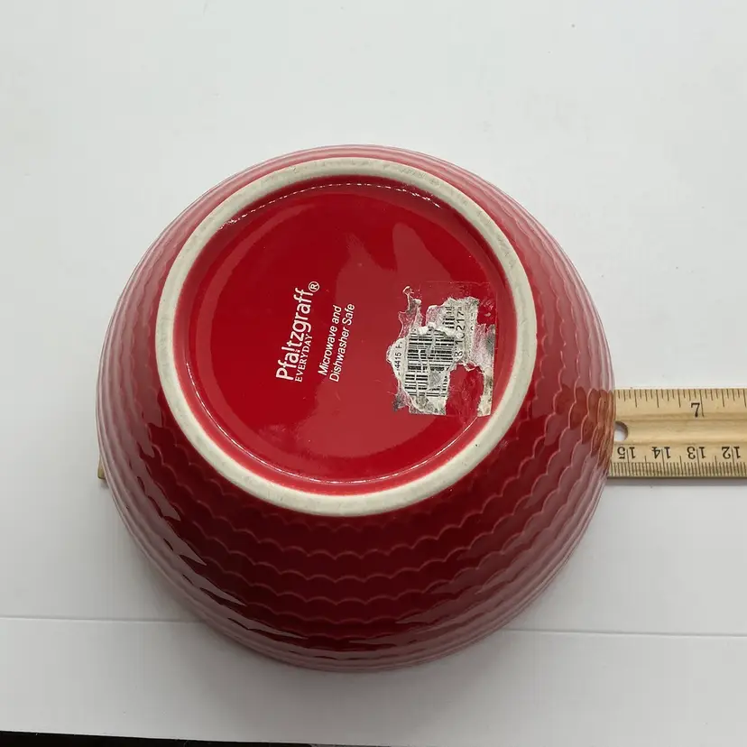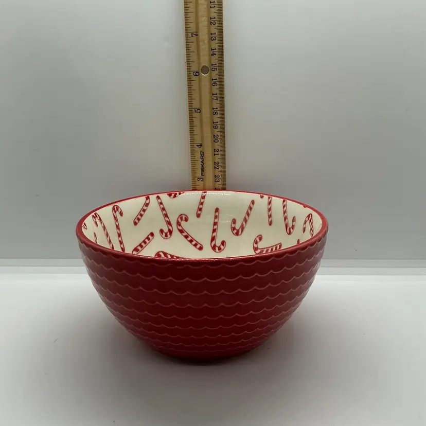 The Pfaltzgraff Everyday Candy Cane Print Cereal Soup Bowl is a festive and charming addition to your holiday table. Made of durable stoneware, this round bowl features a solid red outside with a candy cane print inside, perfect for celebrating the Christmas season. Microwave and dishwasher safe. This was gifted to me several years ago. Great condition. No chips, cracks or crazy. This item comes from a non-smoking home. Rare pattern.