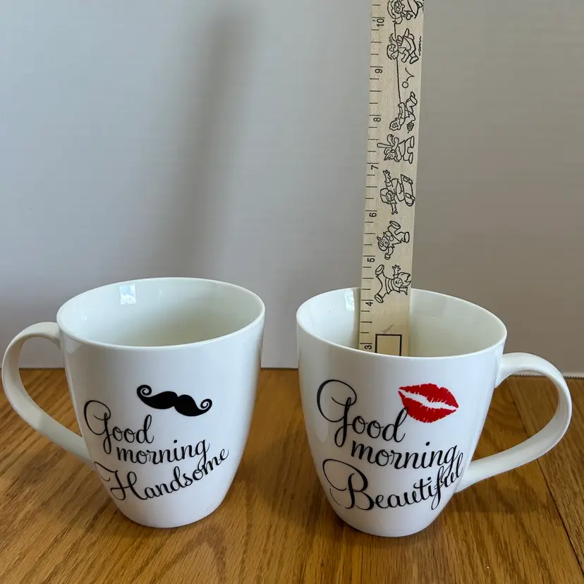 The Pfaltzgraff Good Morning His & Hers Mugs are a classic round coffee mug set, perfect for all occasions.