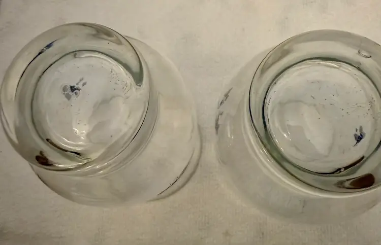 Elegant abstract glass sculpture with a unique design. Perfect for modern decor. Pfaltzgraff is an American Company from York Pennsylvania in the United States. Pfaltzgraff's. The glasses are Pieces from the Poetry Glossy line. They are collected for their nostalgic charm and functional design. Excellent condition no chips no cracks no feeding. Measurements: dimensions on the top are 3" there approximately 3 inches high. The bottom dimensions are 2 1/2". height of 5 inches