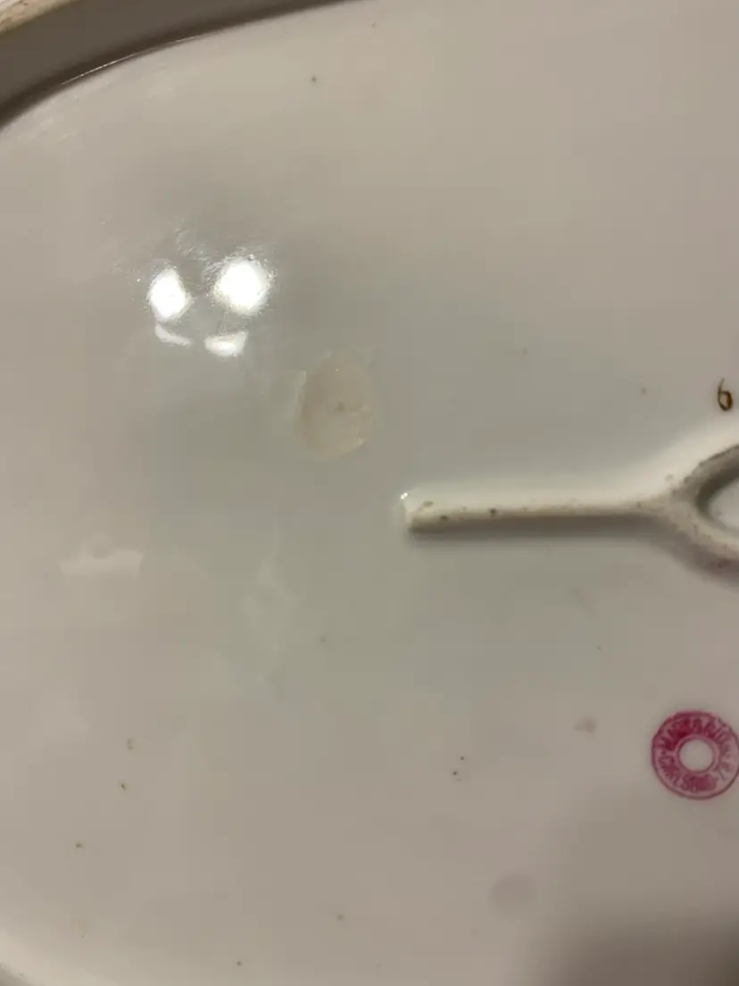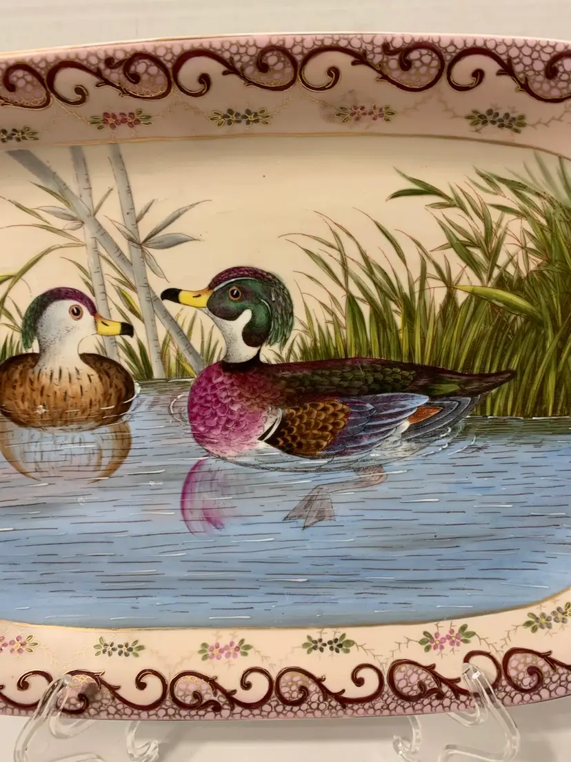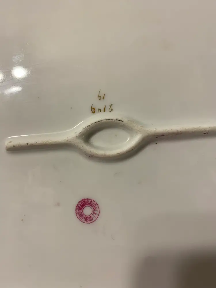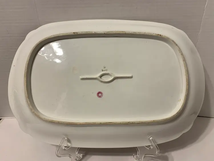 Gorgeous late-Victorian serving piece. Sure to make a stunner of a table setting. Dates to around 1890. Factored decorated, numbered 1249. Large piece, 18” by 12”. In great condition. There is some minor surface wear, but it is free from cracks or chips!