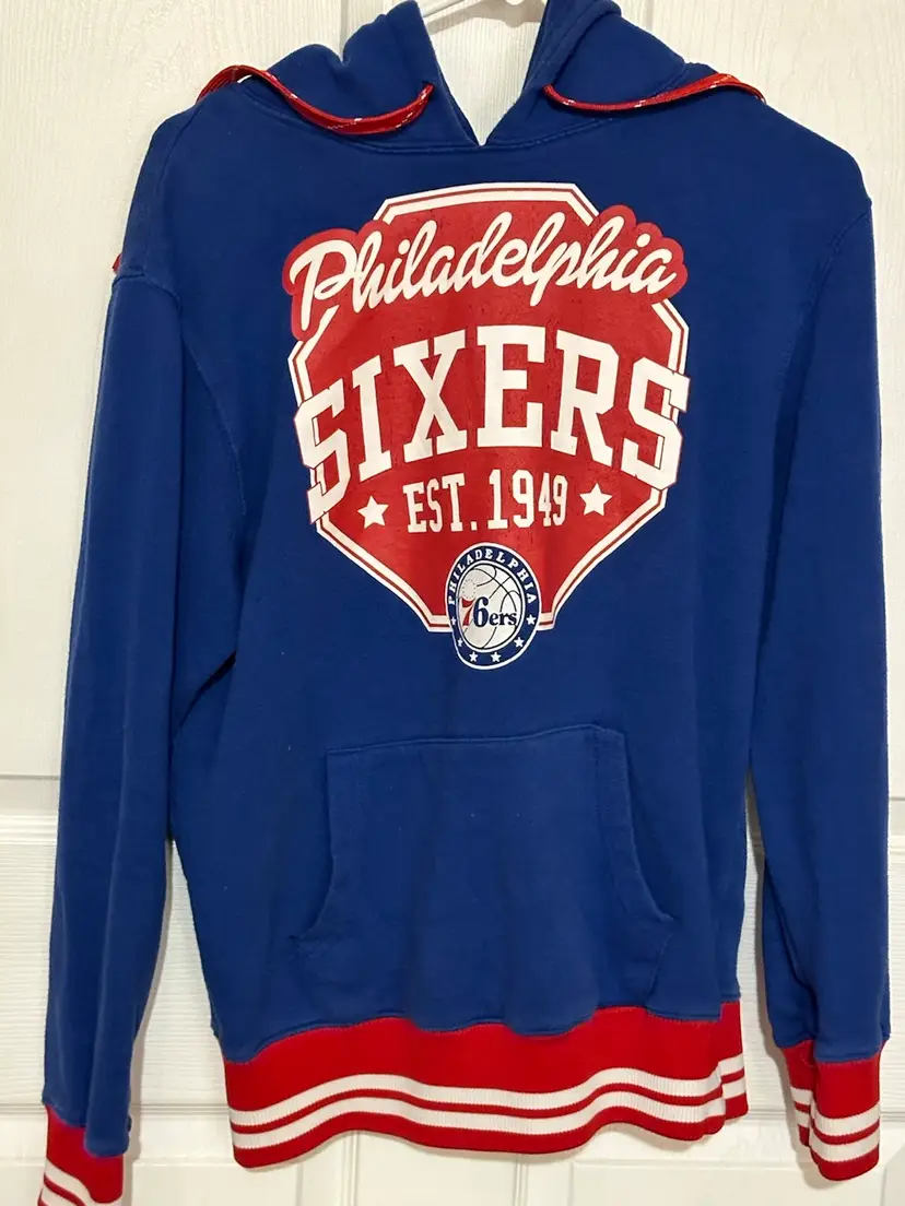 Philadelphia 76er’s Blue Hoodie Size Small very nice condition. Hand warmer pocket.