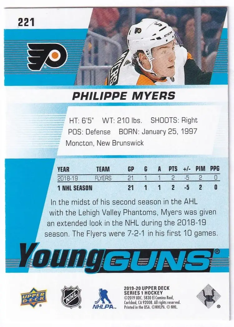 2019-20 Upper Deck #221 Philippe Myers YG RC Philadelphia Flyers Young Guns