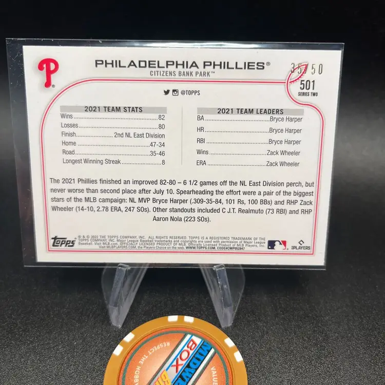 2022 topps Phillies team card featuring Bryce Harper #35/50. Fathers Day blue. Ships free via bmwt.