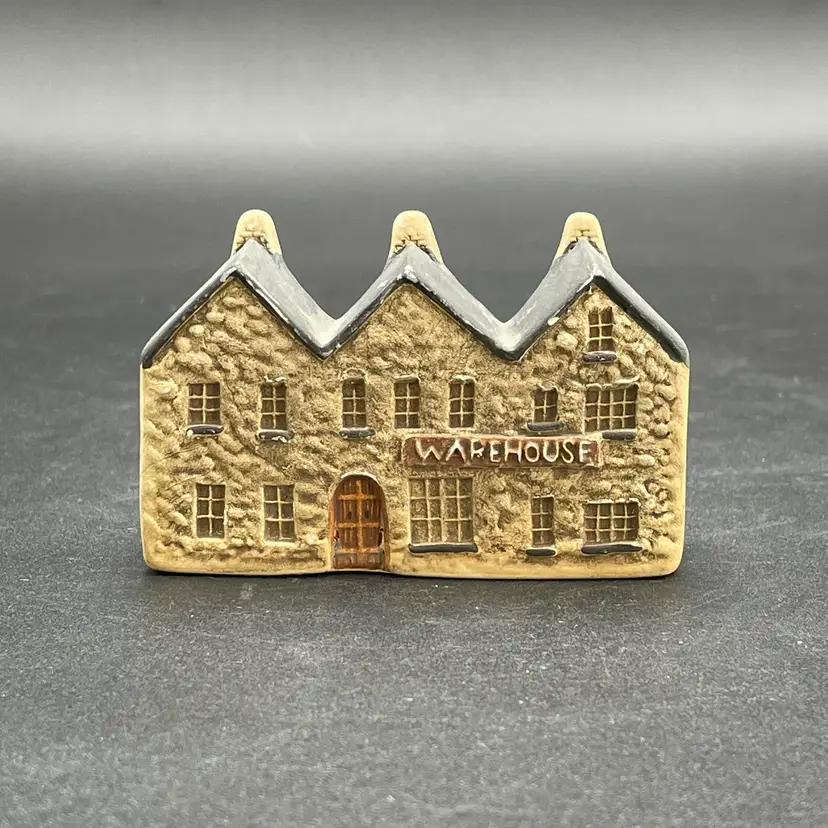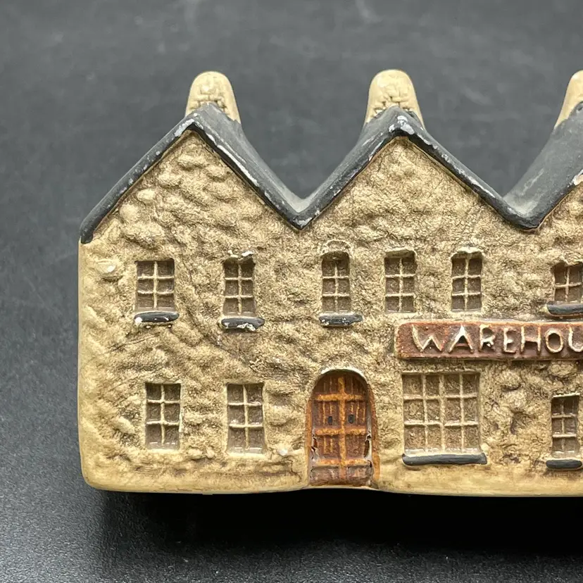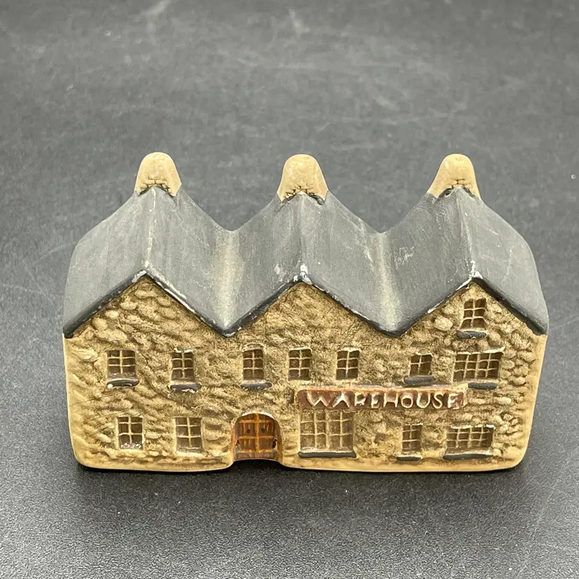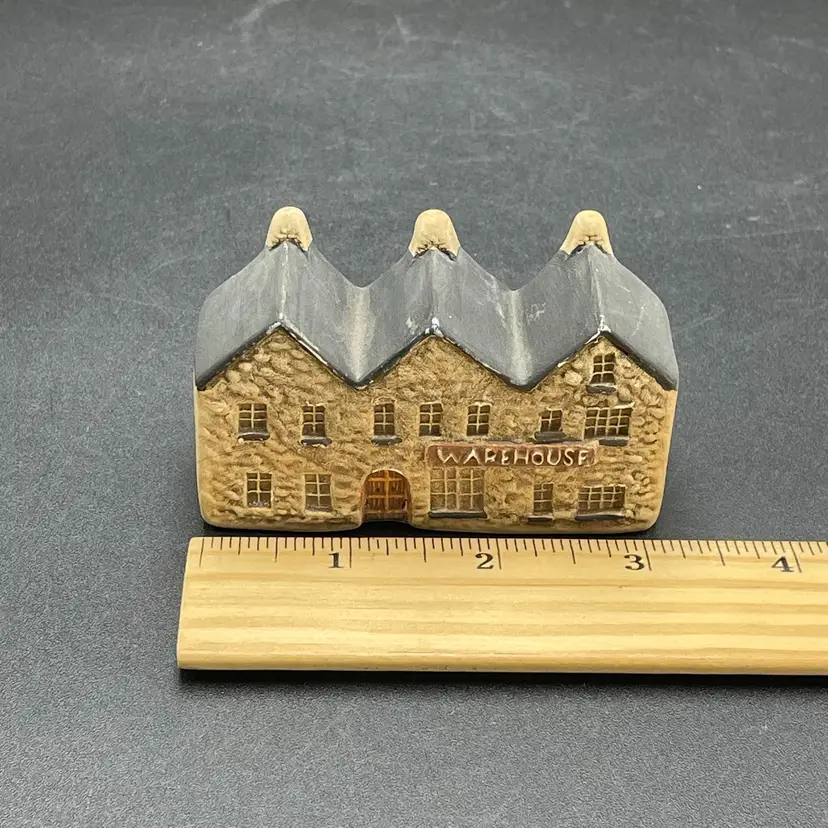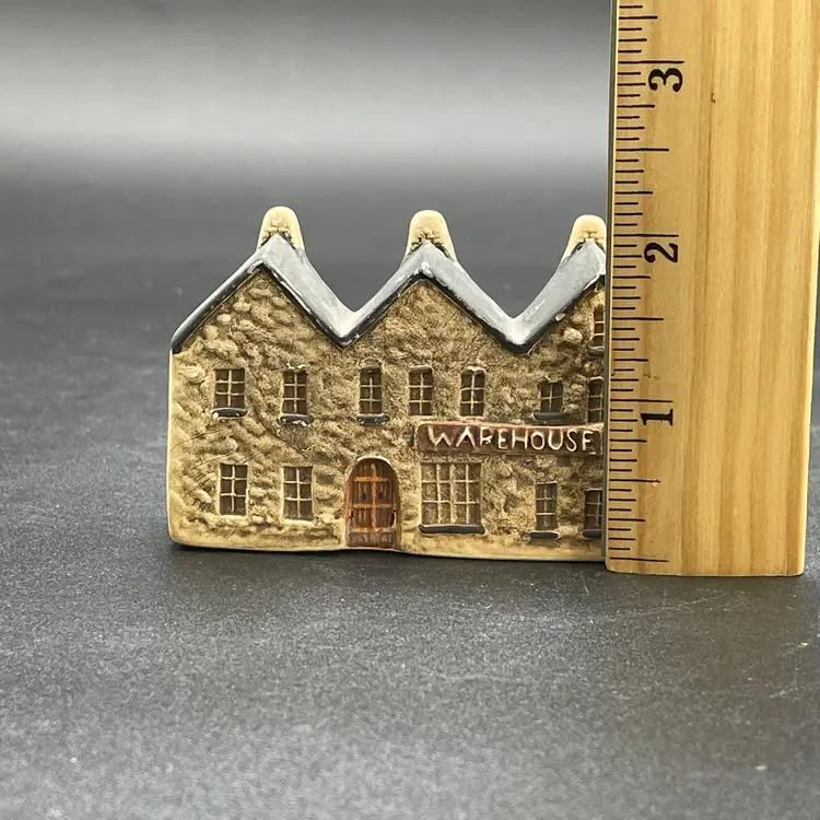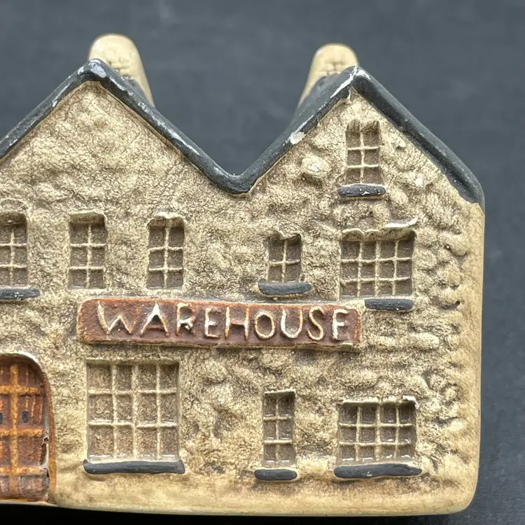 This is a vintage Phillip Laureston #728 warehouse miniature pottery English village building. Marked on the back. Made in England. Measures approximately 2" tall x 3" long. There is a little chipping on the front eves as shown in pictures. No other major flaws.