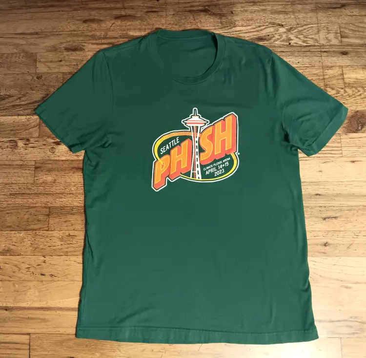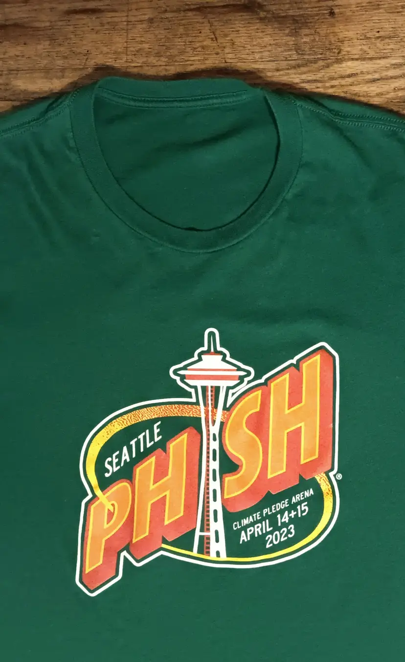 Phish Seattle Supersonics concert graphic t-shirt from Seattld 2023.
