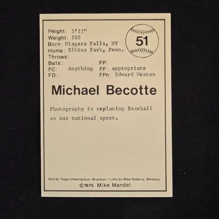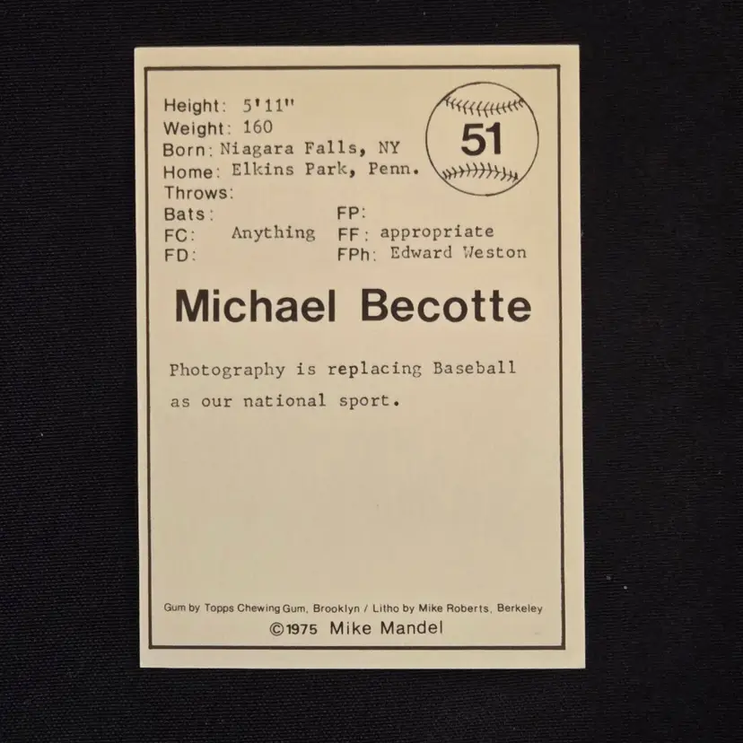 Photographer Baseball Trading Card Michael Becotte #51 Mike Mandel Topps Card 1975. Condition is "Used" with yellowing, bumps to corners, stains, dents, edgewear, etc.