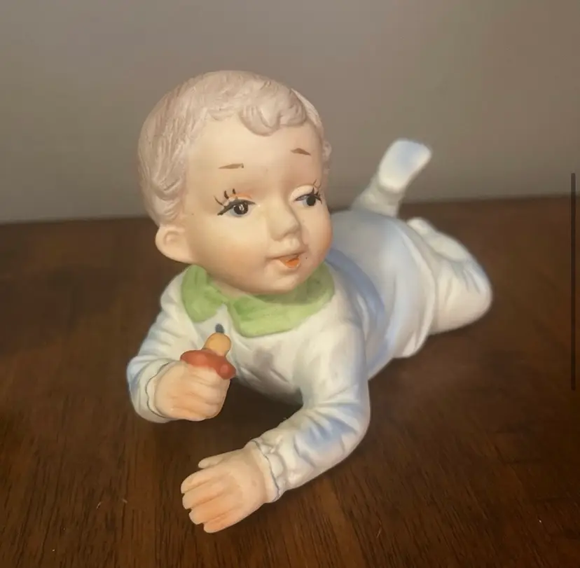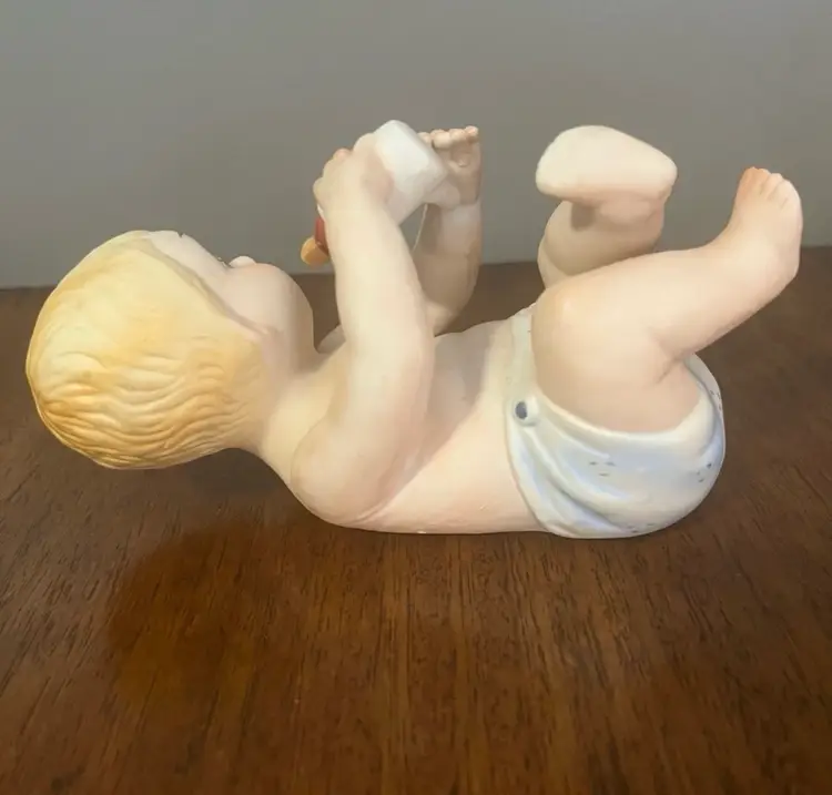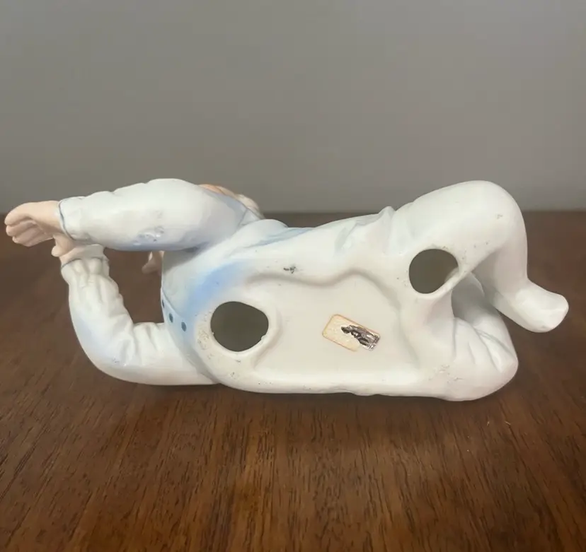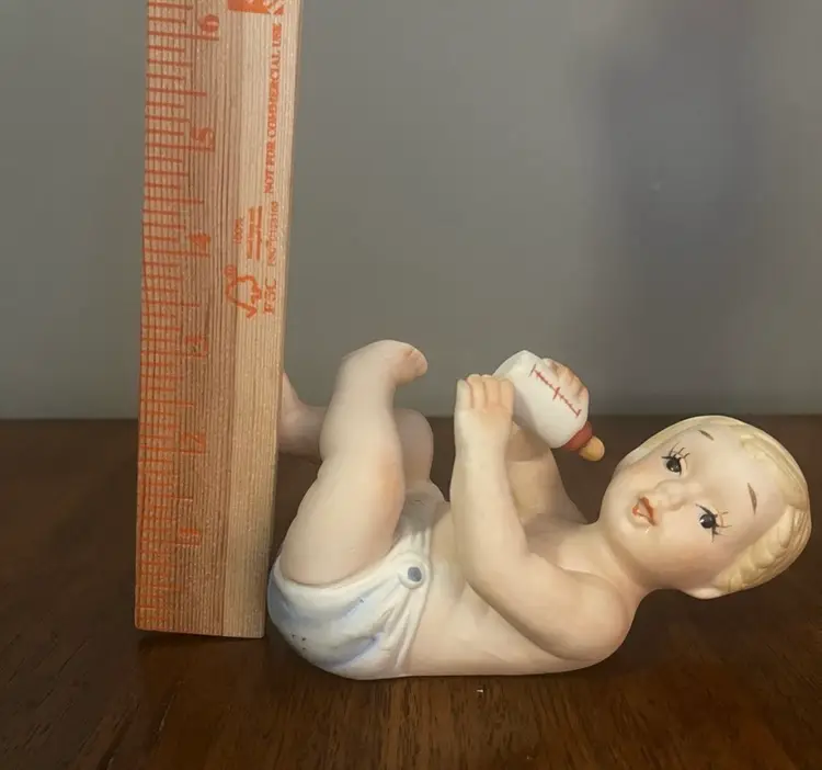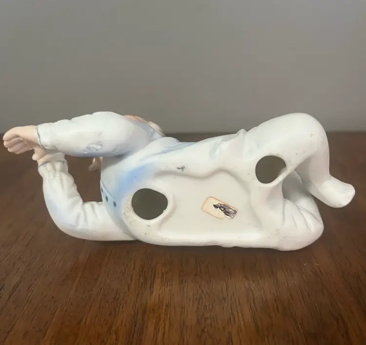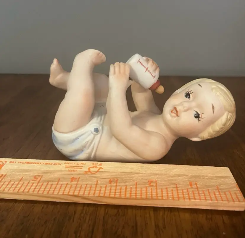Very good vintage condition. Piano babies are porcelain figurines that were popular during the late 19th and early 20th centuries. They were typically placed on top of pianos to add a decorative touch to the instrument. These figurines often depicted babies or young children in various poses and outfits.
