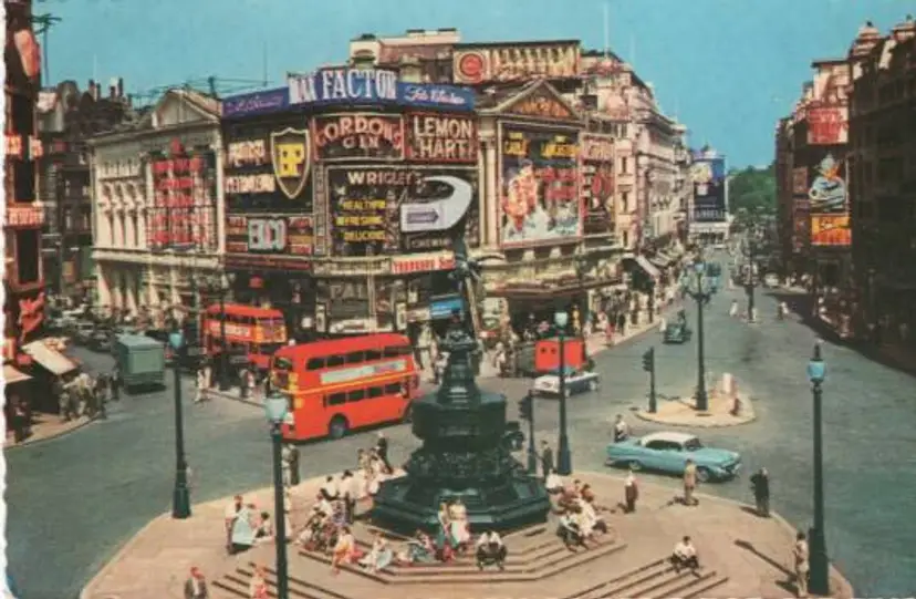This is posted on back from London, just a note saying having a great time. Surface is wrinkled but card is still in good condition.