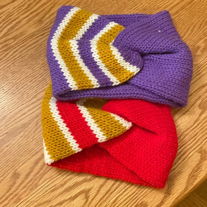 Knitted Ear warmers Handmade 8 1/2 X 6 1/2 Knitted ear warmers are in good condition and are handmade. One size typically fits all pick one.