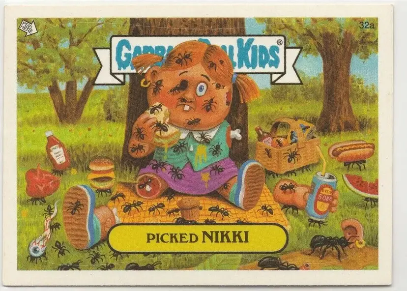 Movie: The Garbage Pail Kids Movie Card Size: Standard Autographed: No Set: Garbage Pail Kids - All-New Series 3 Year Manufactured: 2004 Material: Card Stock, Paper Age Level: 6+ Franchise: Garbage Pail Kids Original/Licensed Reprint: Original Vintage: Yes Series: 2004 All-New Series 3 ANS3 Type: Non-Sport Trading Card Descriptive: comedy parody satire spoof Language: English Manufacturer: Topps Features: Base Set, Sticker Genre: Comedy, Parody, Satire Card Type: die-cut trading card sticker Country/Region of Manufacture: United States Related ID: overourheadz Store ID: American Pop Cult Mononym: overourheads