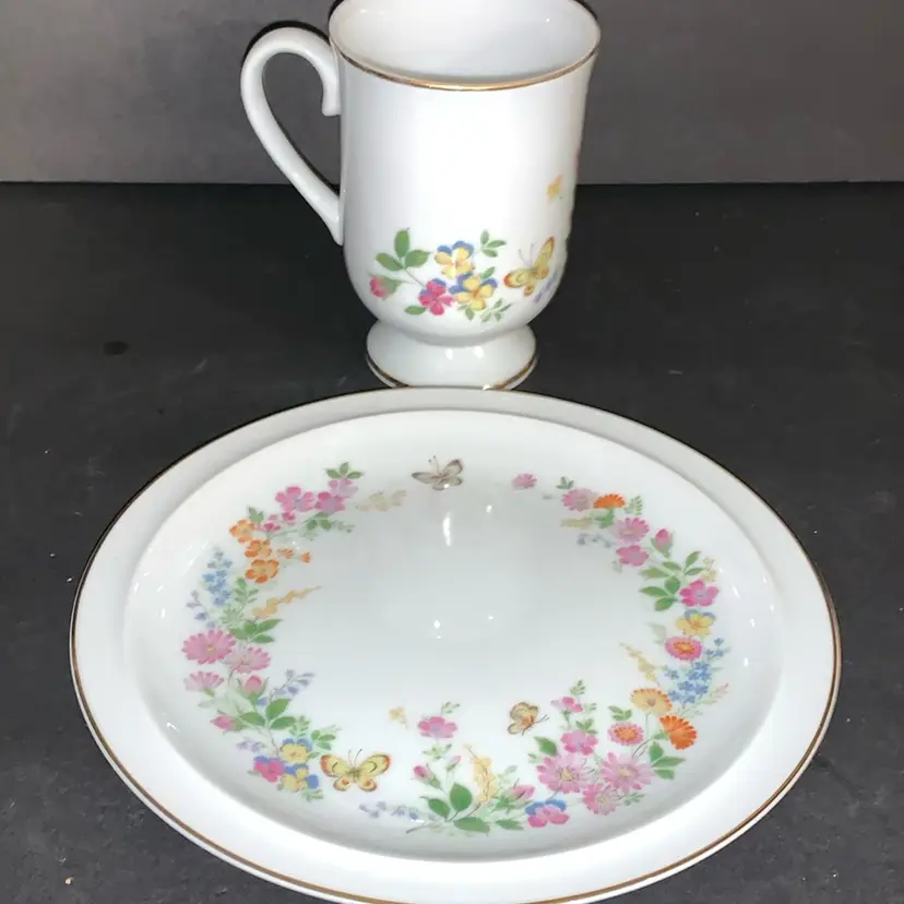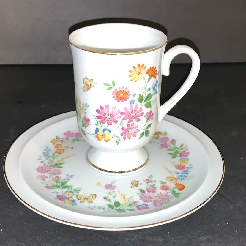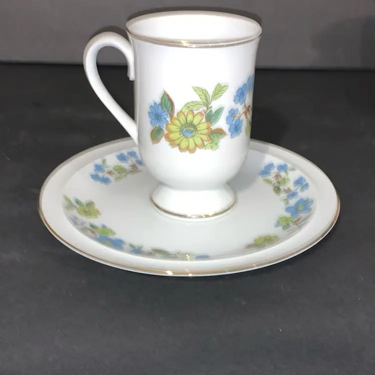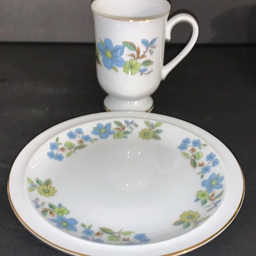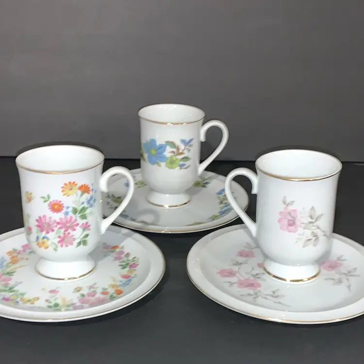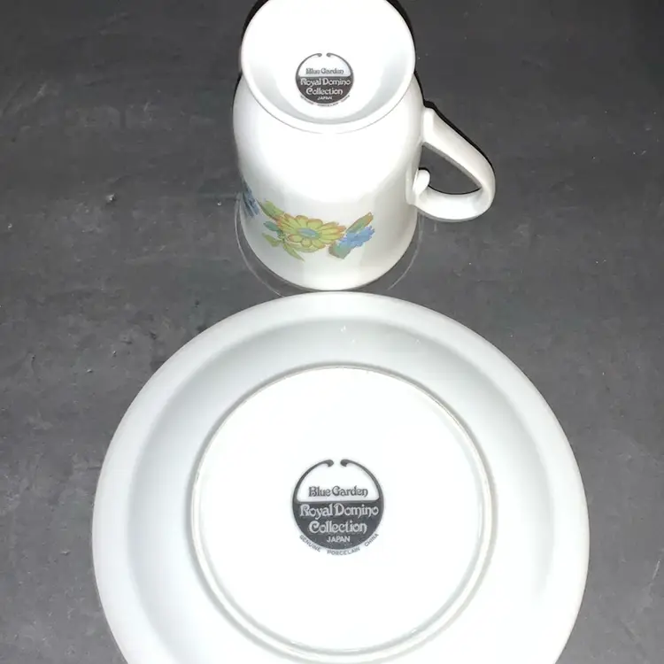 Piece Set ~ Royal Domino China "Spring Garden, Blue Garden, Twilight Rose" (3) Mugs (3) Plates Plates 7.5" Mugs 4.5" tall and 3" opening Rare Find
