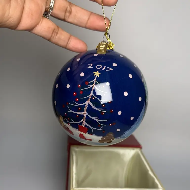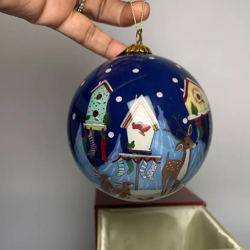 Christmas Tree Ornament In Original Box Pier 1 Imports 2017 Blue Deer Rabbit Glass