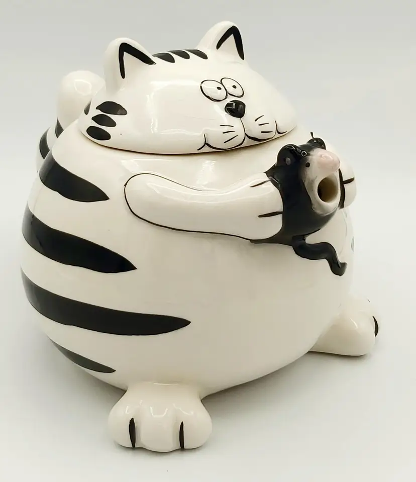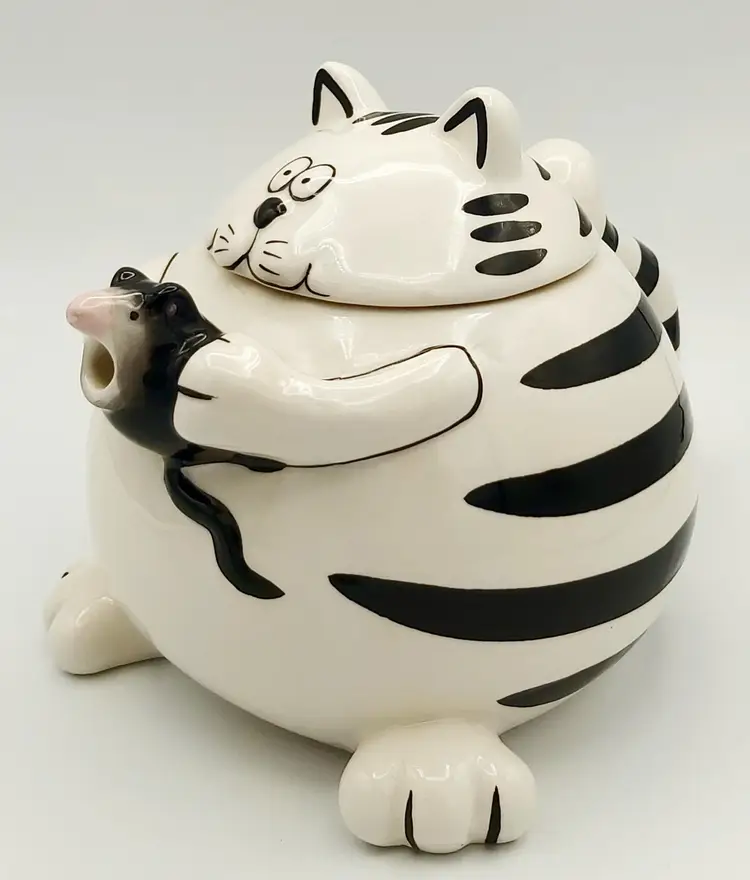 Fantastic and fun vintage teapot to add to your collection. Holds 5 cups. Excellent Used Condition. No chips or cracks, however, does have natural crazing. Crazing shows when in use but almost disappears when dry. See pictures for details. Measures approx. 9" long including handle and spout x 6.5" wide x 6" high including lid. NOTE: Shipping is an estimate to cover shipping and any tariff taxes. Any overages will be refunded. Thank you.