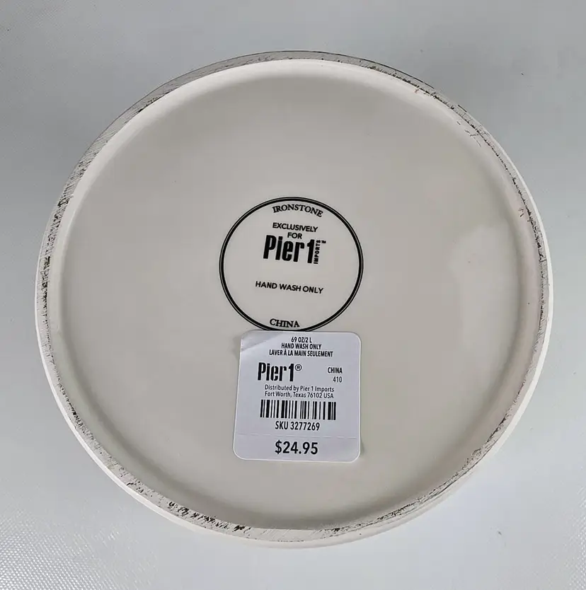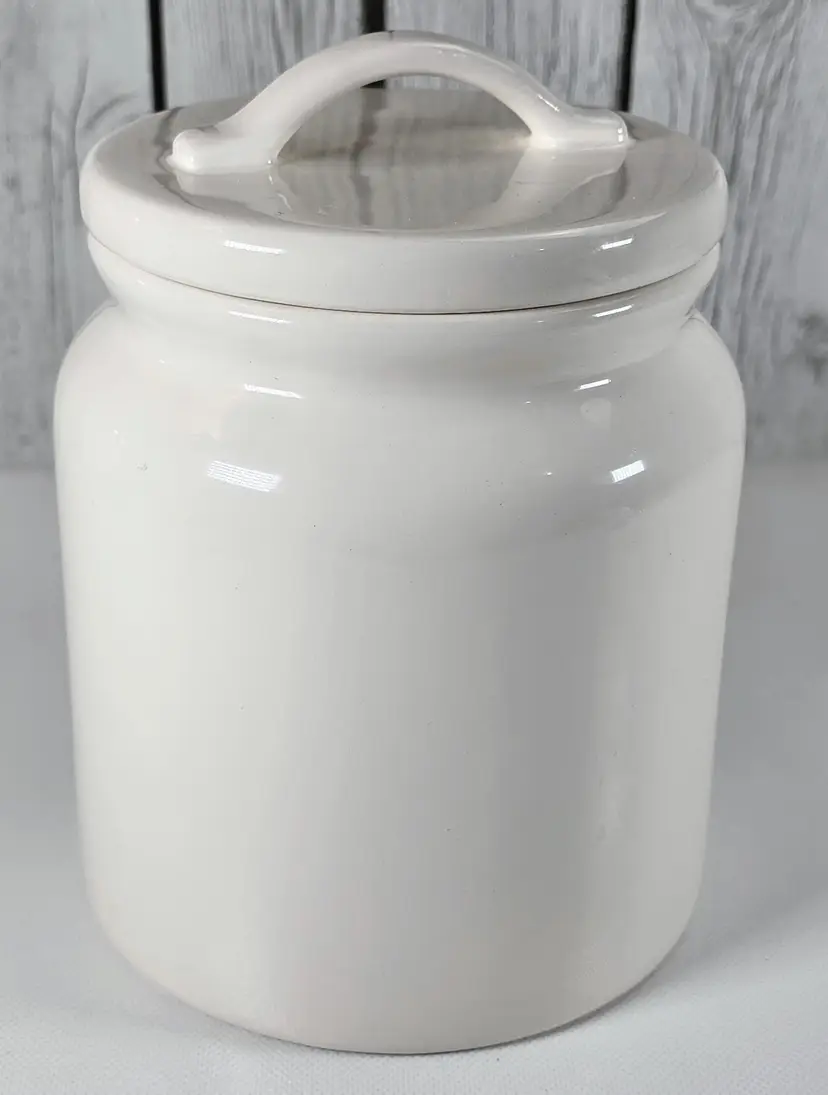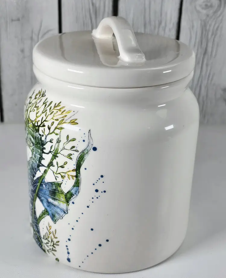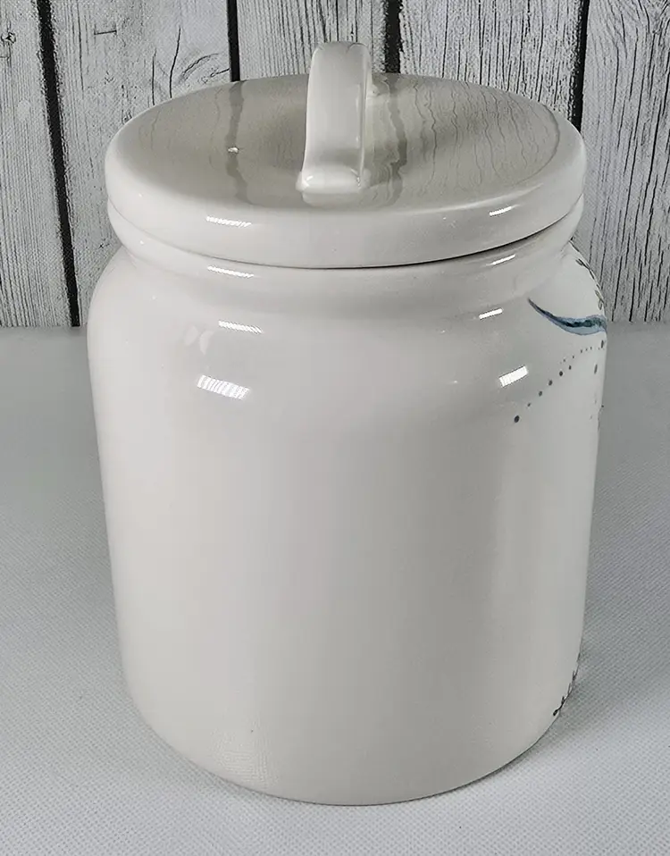 This Pier 1 Sea Life ironstone canister features an elegant raised seahorse to add coastal charm to your kitchen or collection. Measuring 7.5” tall and 5.5” wide, it offers both decorative appeal and functional storage. • Pier 1 Sea Life ironstone canister with raised seahorse motif • Durable ceramic storage jar ideal for kitchen pantry shelf or countertop decor • Kitchen canister style enhances coastal coastal farmhouse or nautical interior trends • Measures approx 7.5” tall x 5.5” wide Era 2000s porcelain collectible