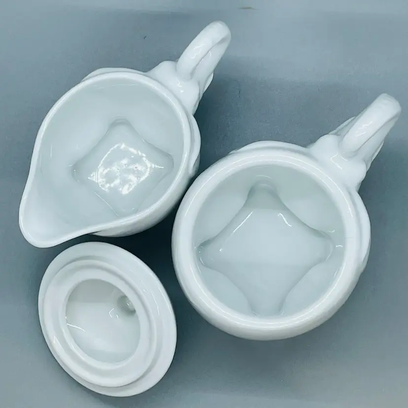 creamer: 3.25” H x 5” L x 2.5” diameter