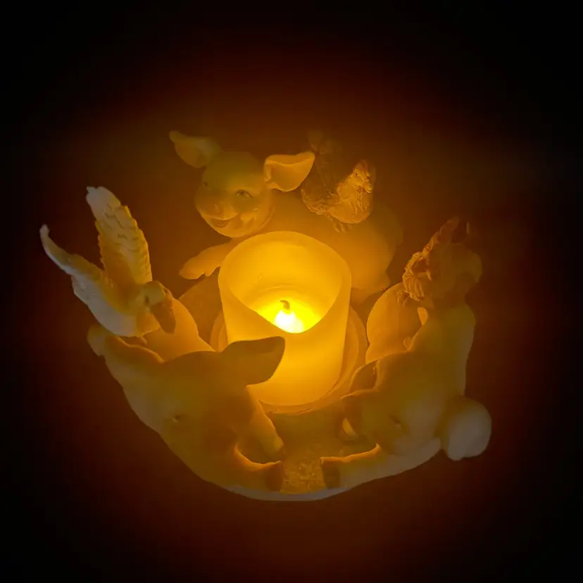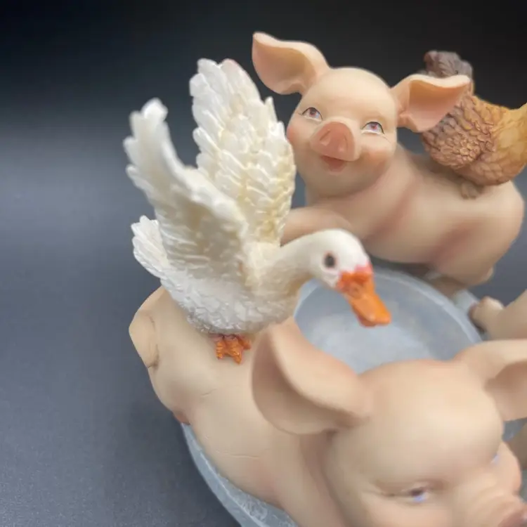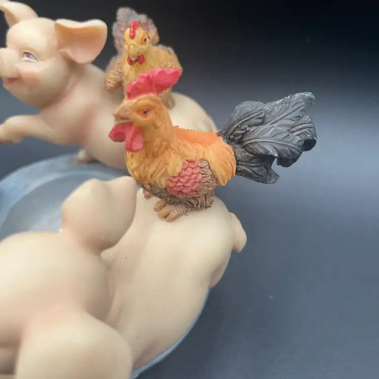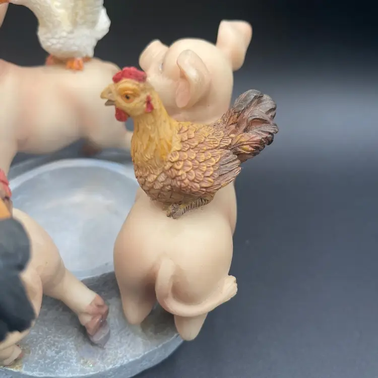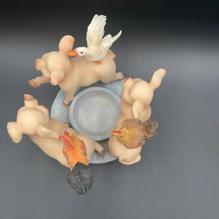 This whimsical candle holder features a farm animal design that will add a splash of fun to any room. Farm animals include 3 pigs, 1 duck, 1 chickens and 1 Rooster. Perfect for the farm and countryside memorabilia collector. Candle base is 4.75“ in diameter And is also 4.75“ tall The votive candle insert measures about 2 1/8”