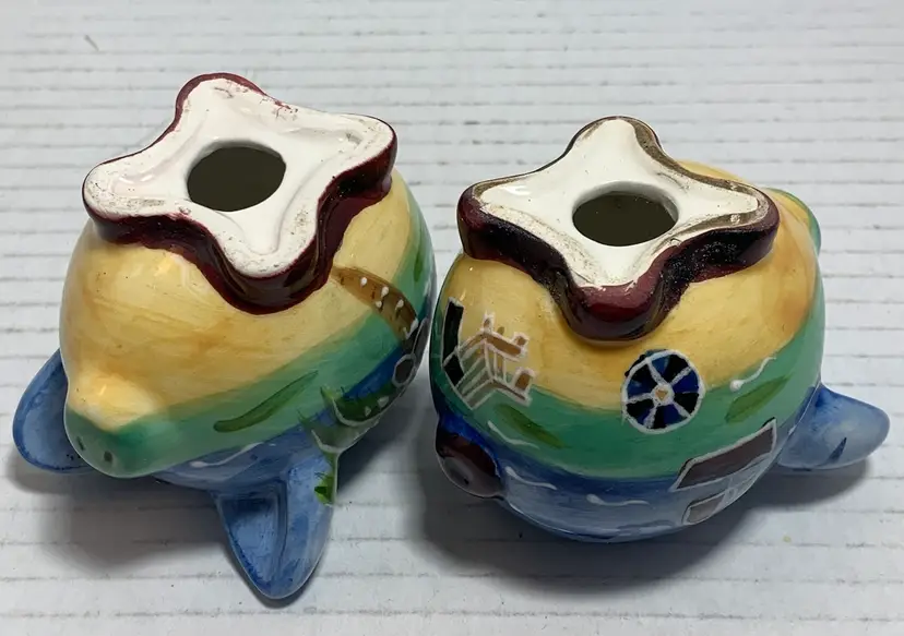 No stoppers. In good condition with no chips, cracks or repairs. See all photos for condition details.