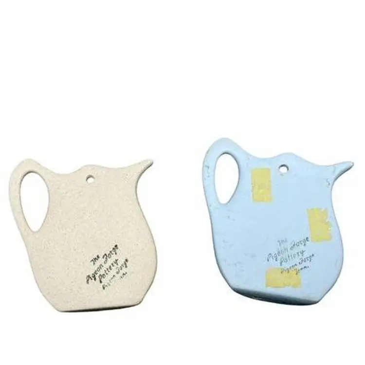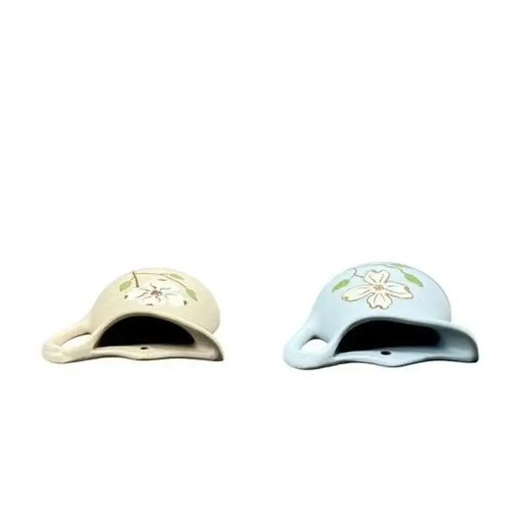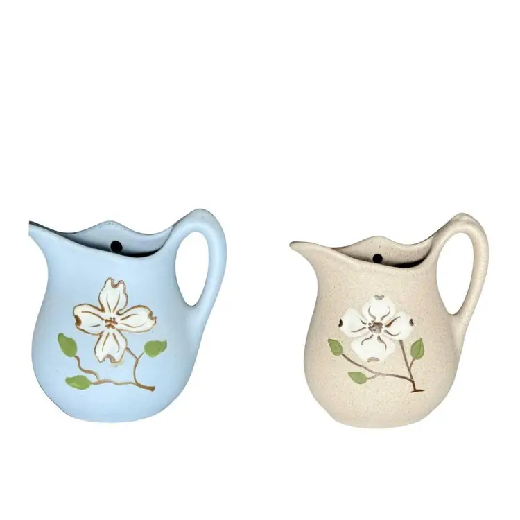 Two wall pockets is a natural stone matte finish with hand-painted details. It is simple, sweet, and perfect for cottage-style decor. Signed. Good vintage condition, no chips or cracks, tape residue on back of blue wall pocket.