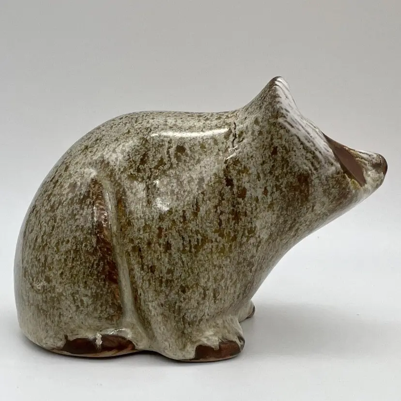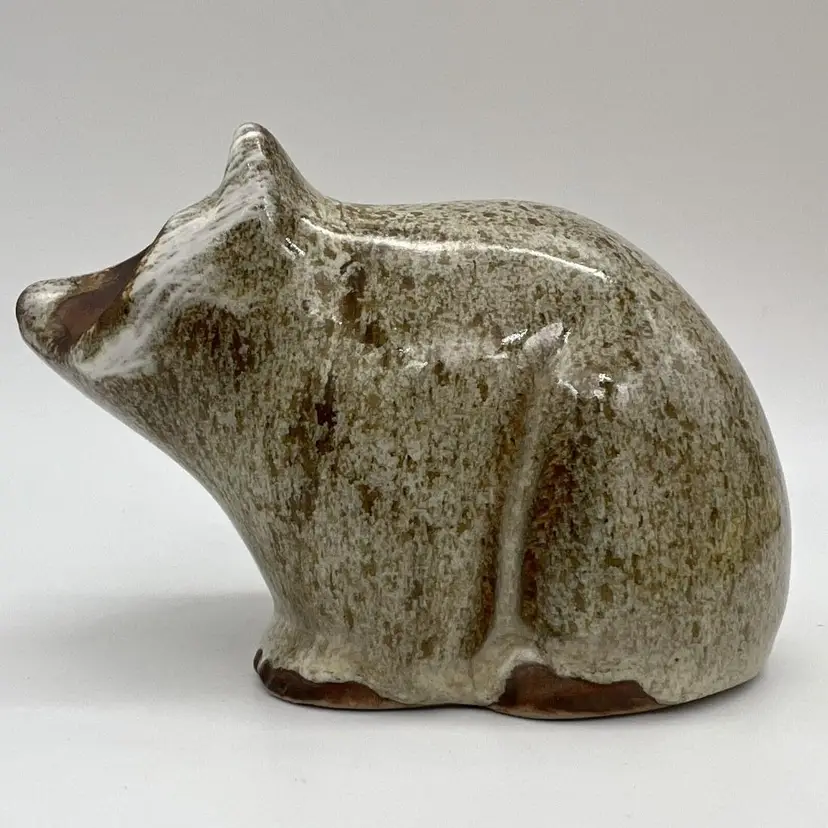 Pottery Raccoon Figurine Approximately 5" long and 3 1/3" tall Signed on the bottom: Pigeon Forge Pottery Tenn D. Ferguson