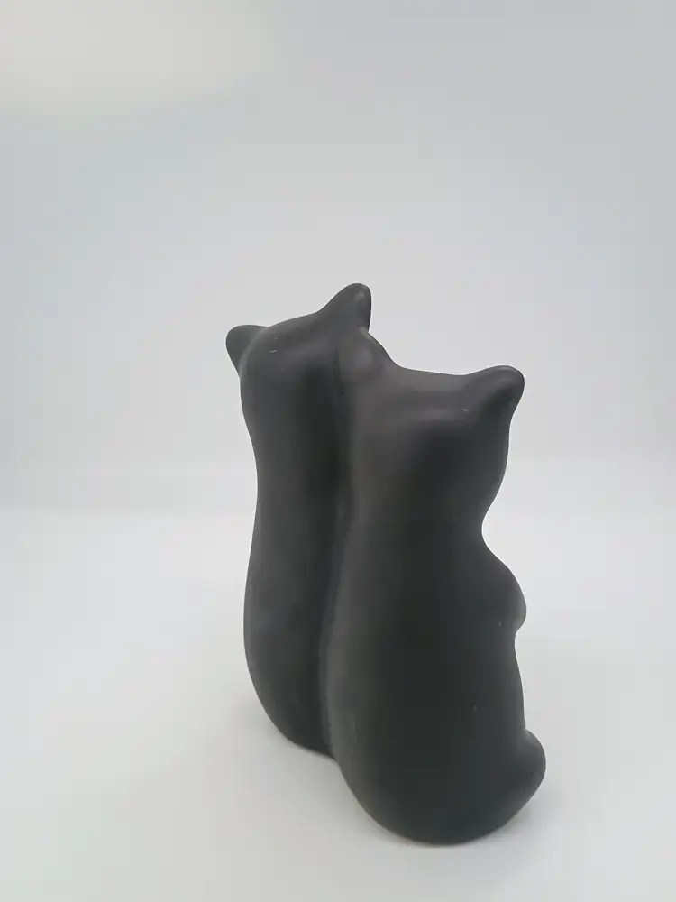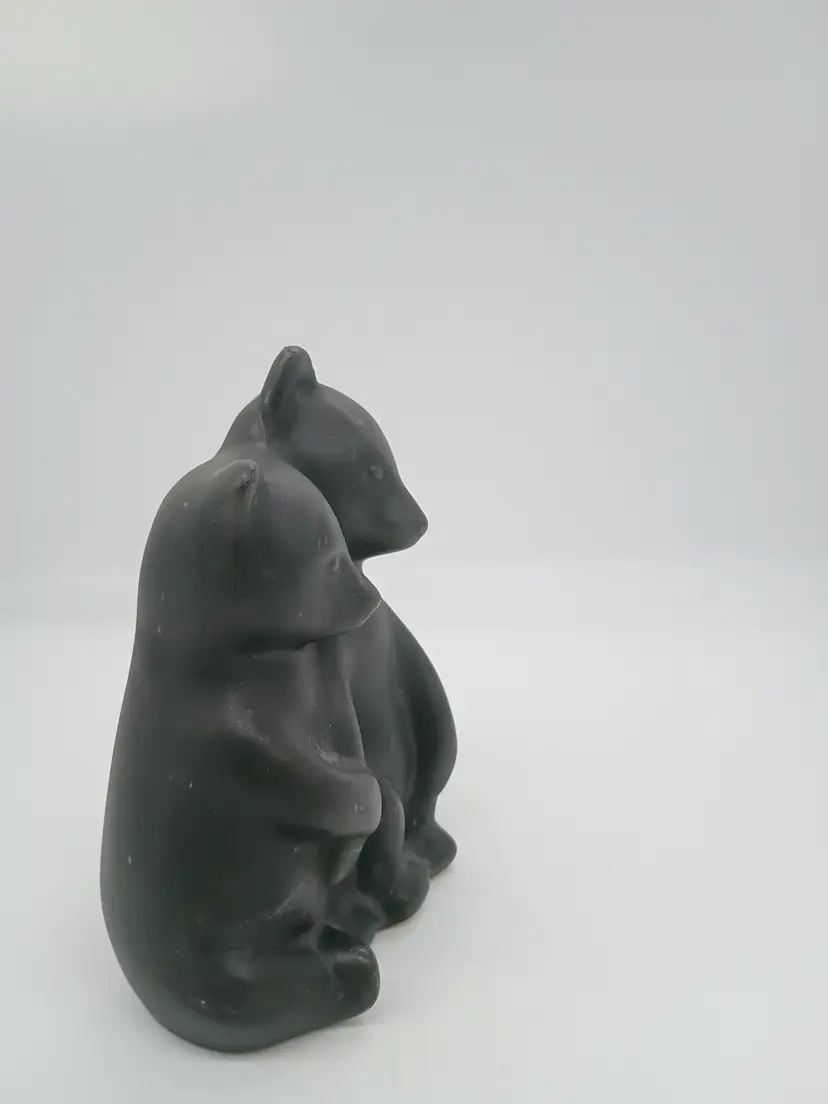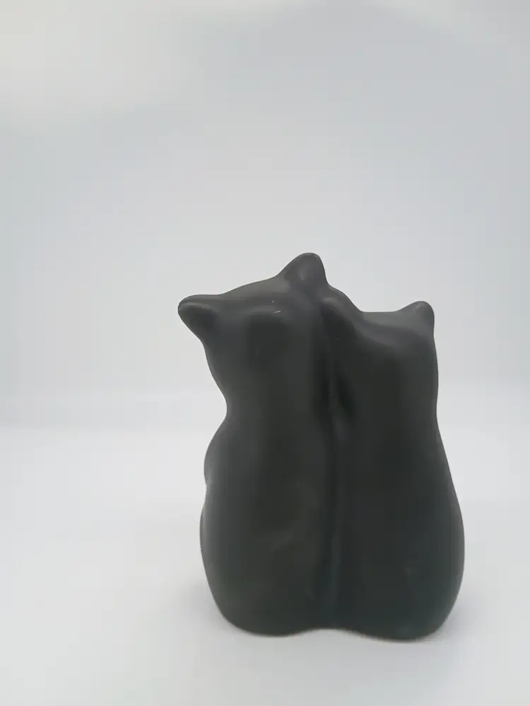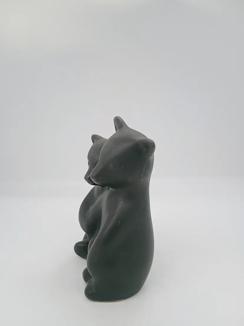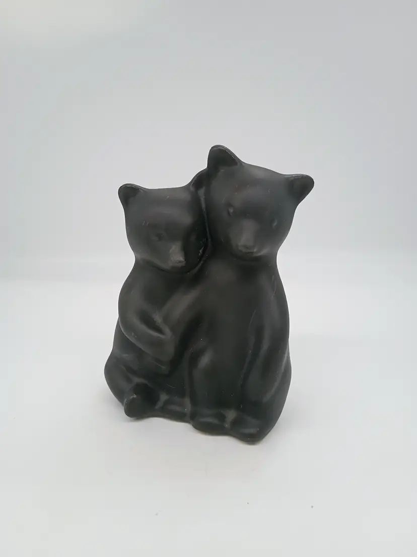 PIGEON FORGE POTTERY Tennessee Matte Satin BLACK BEAR CUBS Figurine Vintage. This is 6 inches tall 4 inches long and 3 inches wide. Features 2 cubs hugging hold each other. This is preowned, No chips cracks or flea bites, No damage to glaze there is a tiny bit of roughness on edge of one ear but this is just how it was made not damage. Glaze covers it. Excellent condition. Ships USPS