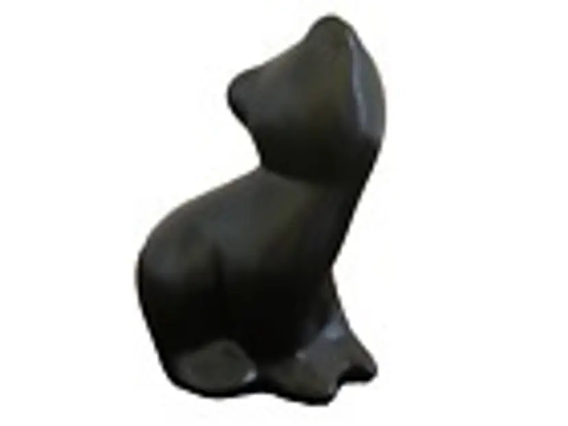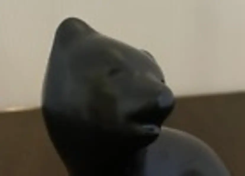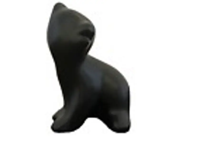 This exquisite black bear figurine is an original piece of art pottery from Pigeon Forge Pottery in Tennessee, designed by the renowned artist Douglas Ferguson. It stands at a height of 4 inches and is handmade with great attention to detail. The bear cub sculpture is solid and features a beautiful pattern, making it a perfect addition to any collection of decorative pottery and glassware. The figurine is signed by Douglas Ferguson himself, making it a unique item for collectors. Signed on the bottom, "Pigeon Forge Pottery - D. Ferguson Tenn. It has been produced using traditional pottery techniques, adding to its authenticity, and is an original piece, not a licensed reproduction. This bear cub sculpture is a must-have for lovers of bears and art pottery alike, making it a great gift or addition to any home decor.