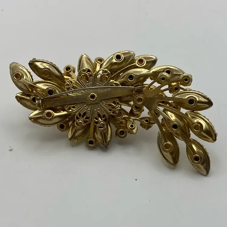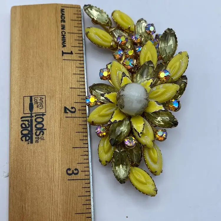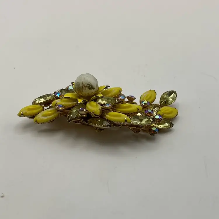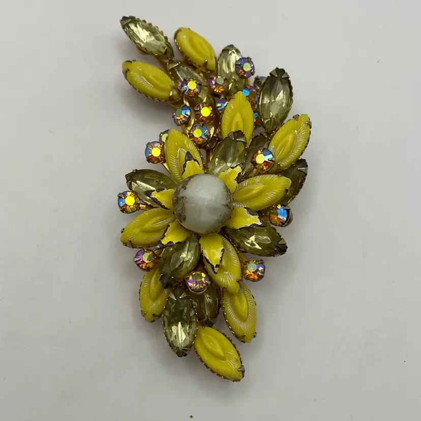 Pin Brooch Vintage Antique Yellow Aurora Borealis Rhinestone Crystal Floral