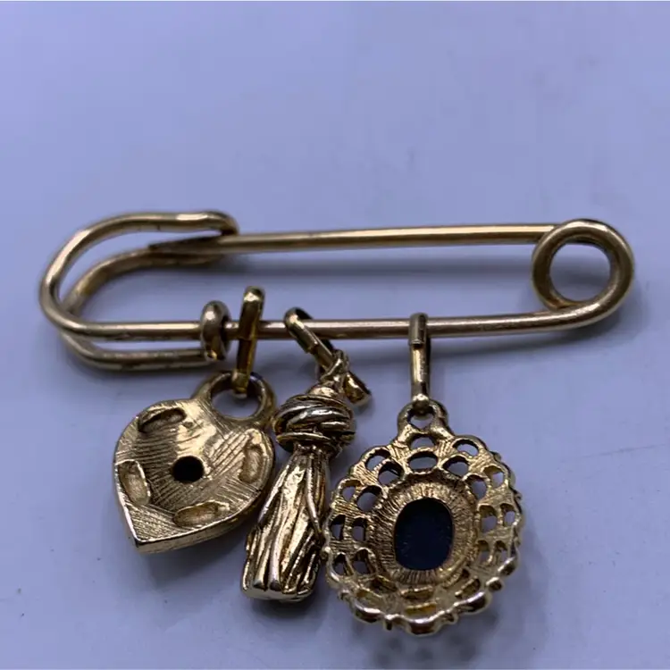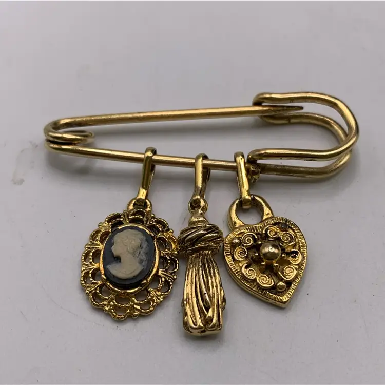 Pin Brooch With Charms Including a Cameo 2” Wide