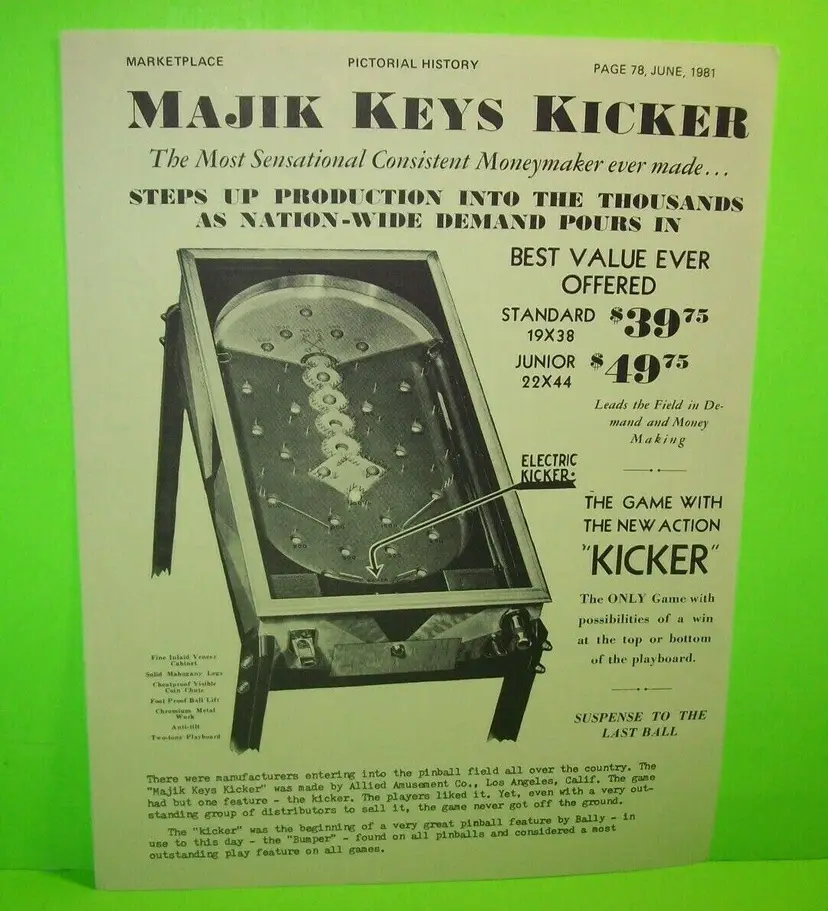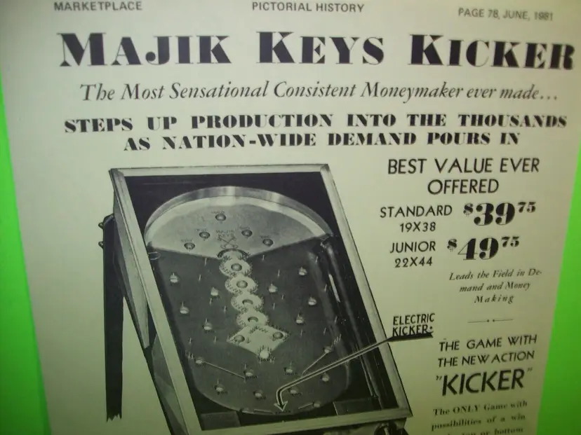 Country/Region of Manufacture: United States Brand: Allied Amusement Co. Original: Paper Magazine Advertising Model: Majik Keys Kicker Year: 1981