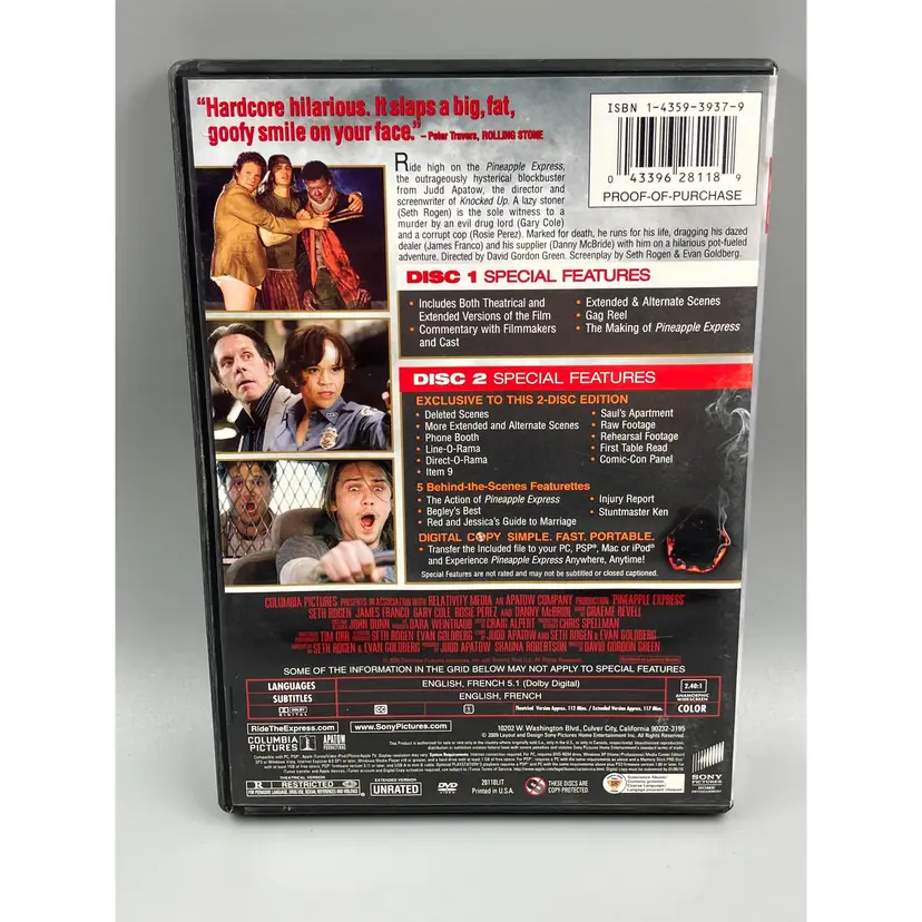 Pineapple Express (DVD, 2-Disc Unrated Special Edition) featuring Seth Rogen and James Franco. In very good used condition. Will be shipped in a padded bubble mailer. In stock and ready to be shipped.