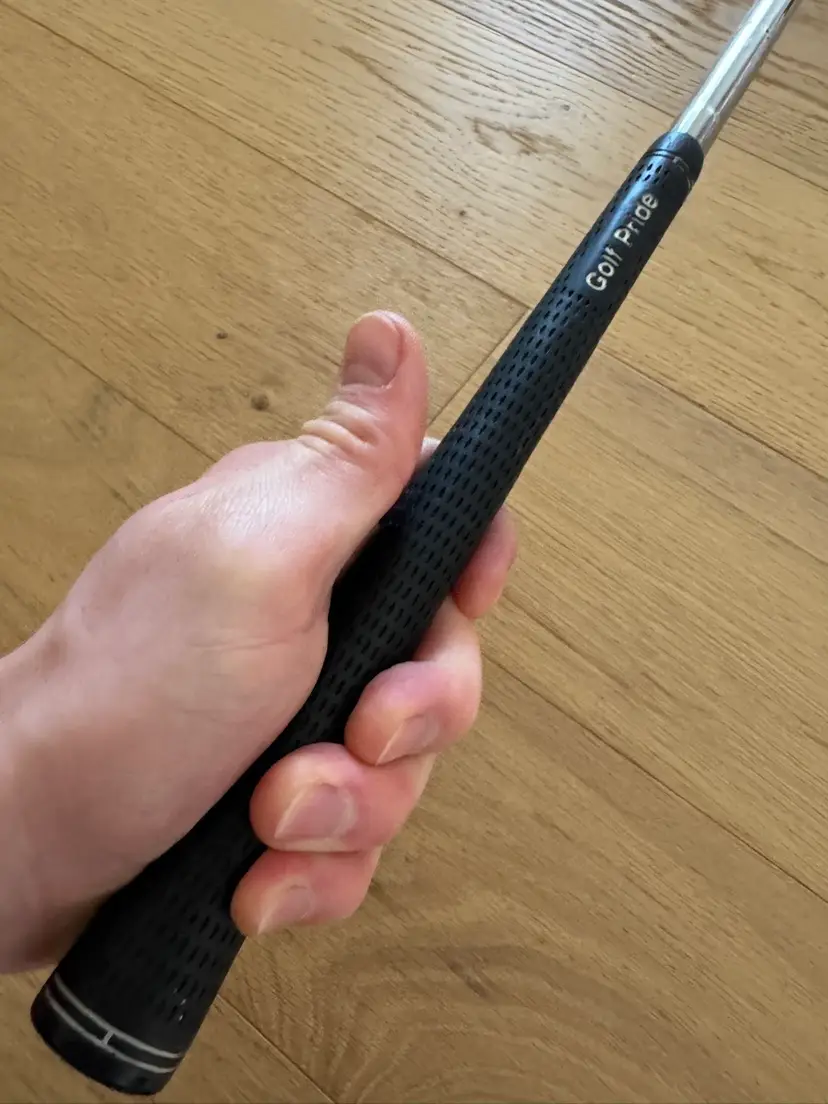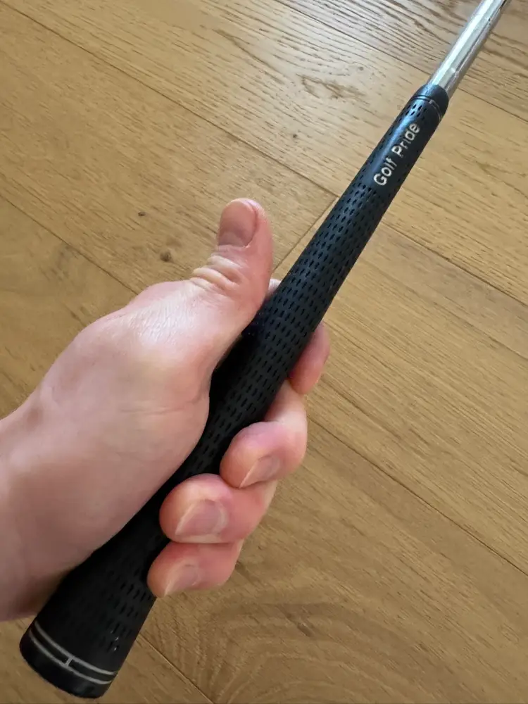 Not sure what shaft is in there since the label fell off, but it feels like a stiff. Golf Pride tour velvet grip.