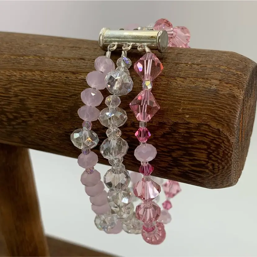 Pink & Clear Crystal Bracelet 7 1/4” Long