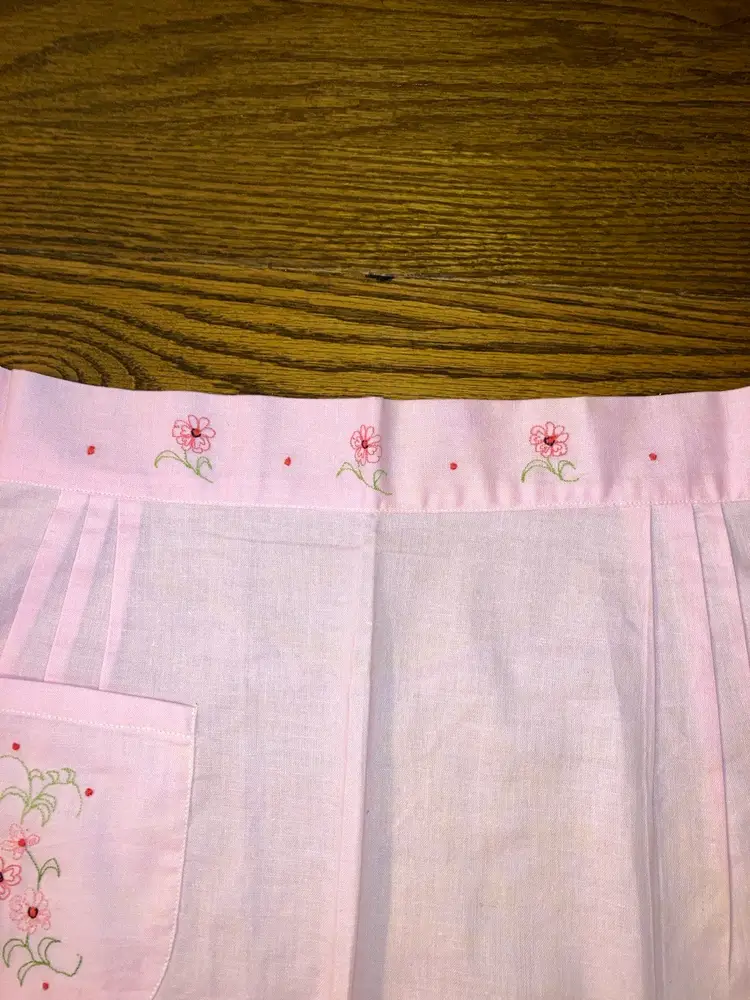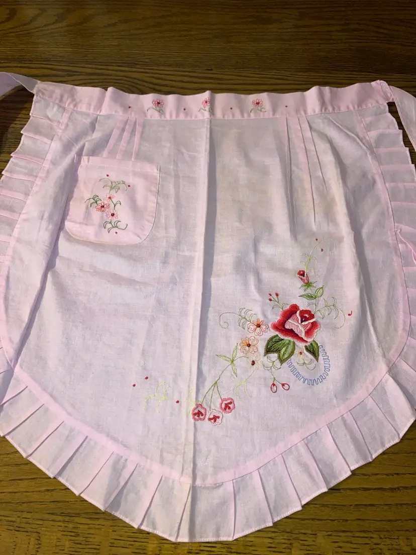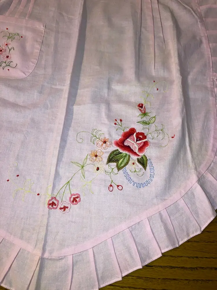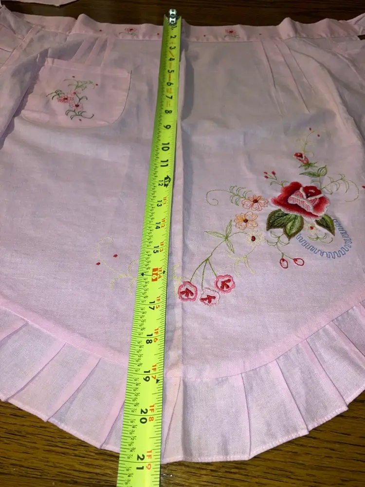 Pink Apron With Floral Design! 58” Waist Strap To Strap Tip 21” Long!