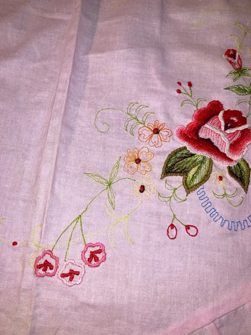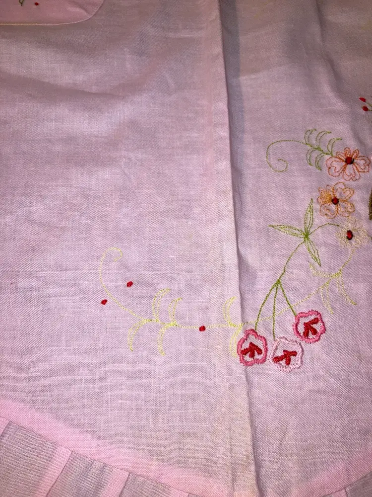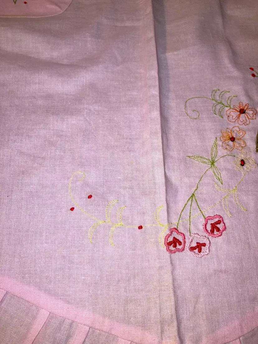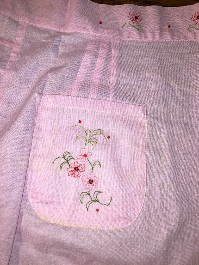 Pink Apron With Floral Design! 58” Waist Strap To Strap Tip 21” Long!