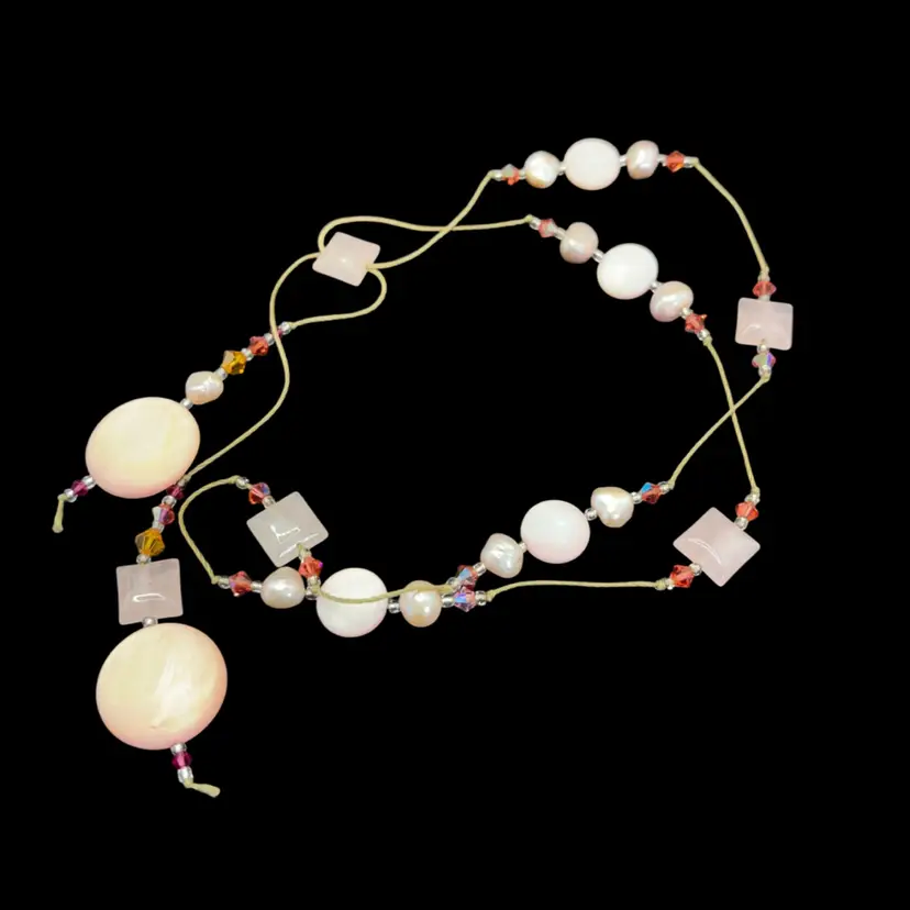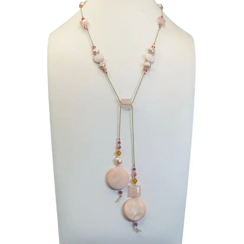 Pink Crystal And Mother Of Pearl Slide Necklace