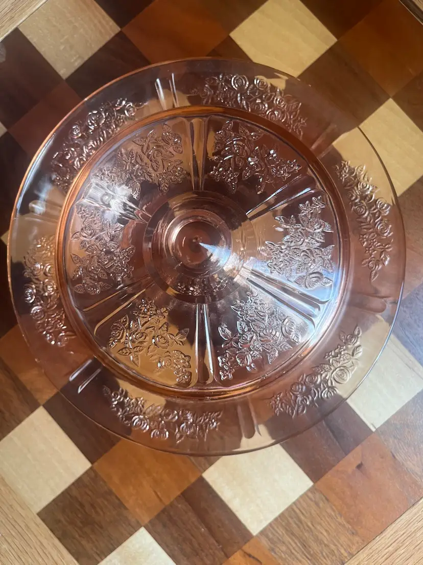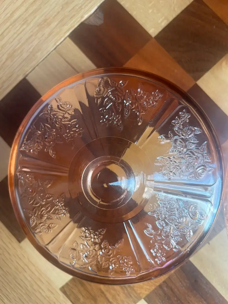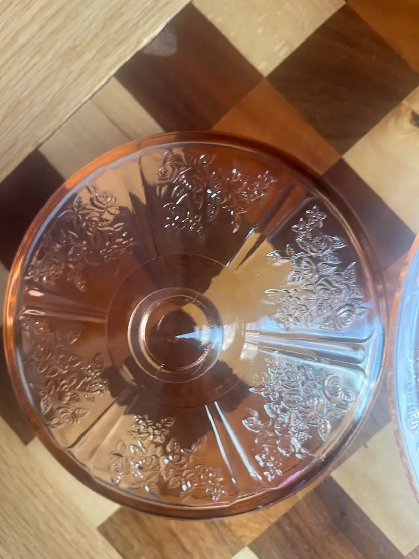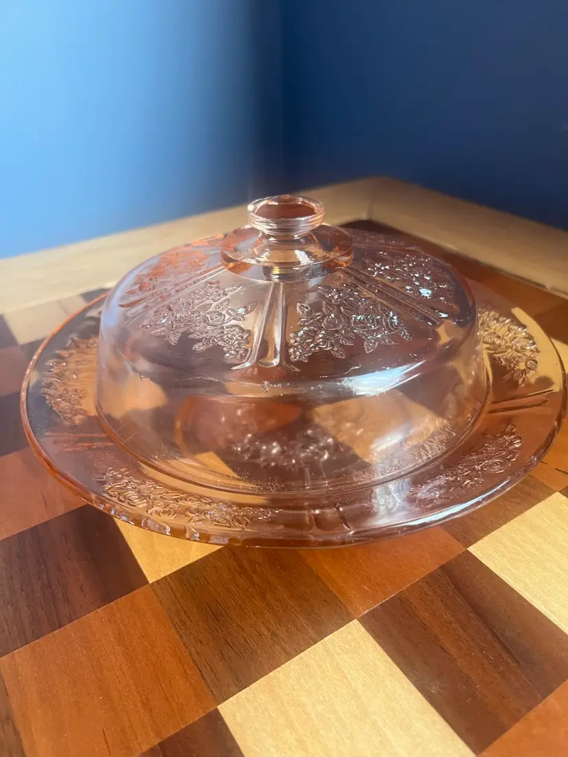 Federal glass Sharon, cabbage, rose, pink depression, glass, covered butter dish