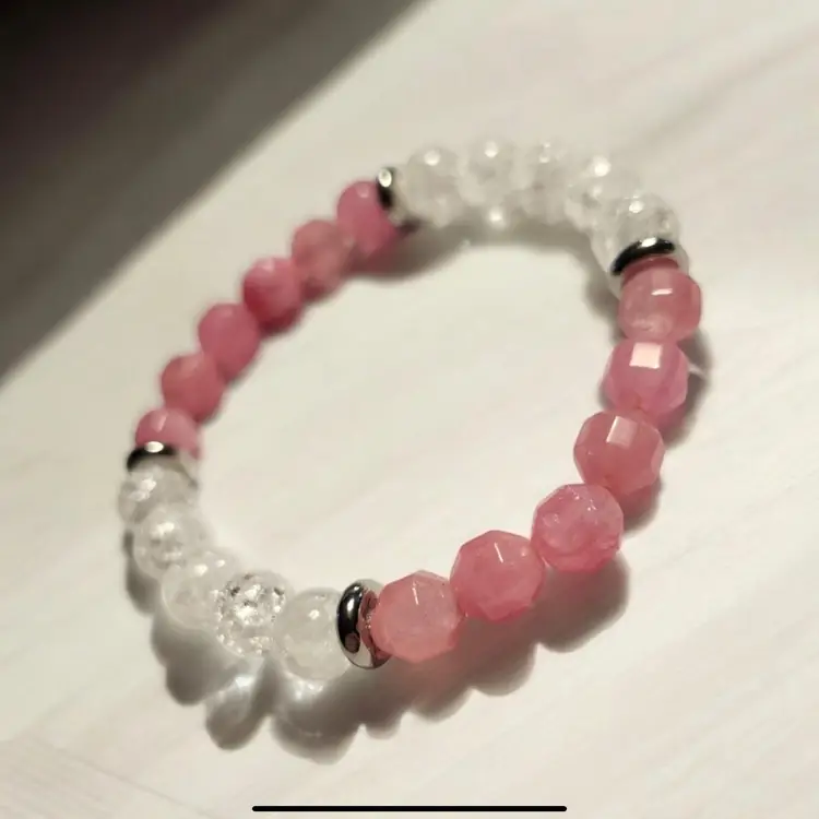 Handcrafted gemstone bracelet - Pink Dolomite & White Crackled Quartz