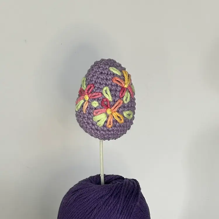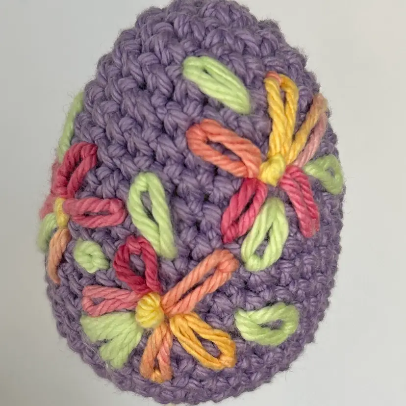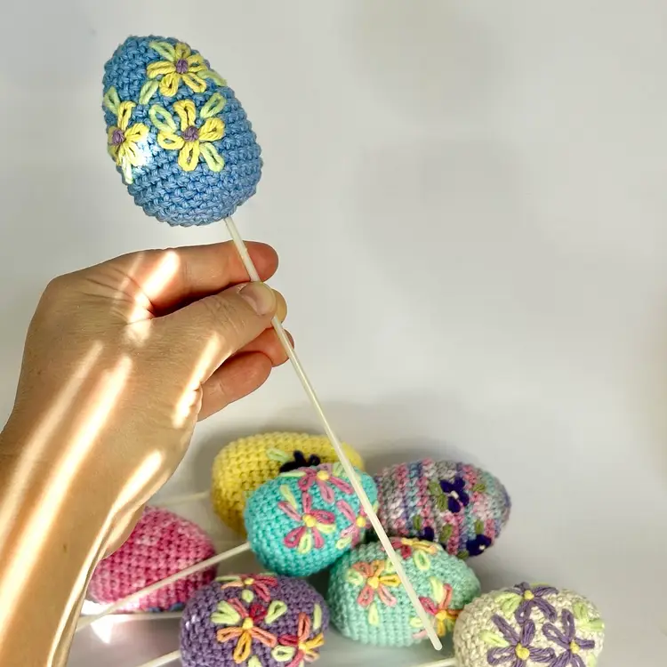 These pretty crochet Easter eggs would look great added to a wreath, in a bouquet, or anywhere you need a little Easter color! They are on plastic mini balloon sticks. The sticks are easy to cut down to size or even bend when heated (message me if you need help with that). The eggs alone measure about 3" by 1.5" - including the stick they are about 10" tall. Made in a ๐ญ smoke FREE, ๐พ two CAT home.