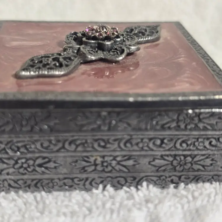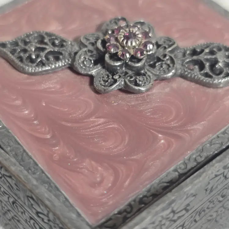 enameled metal trinket box jewelry box pink decor vintage style filigree keepsake box romantic decor small storage