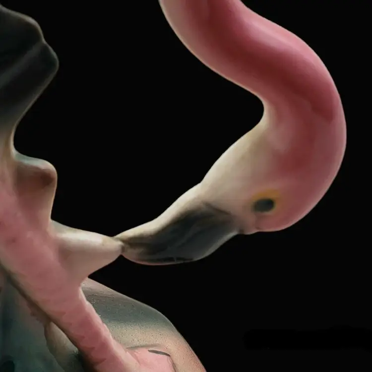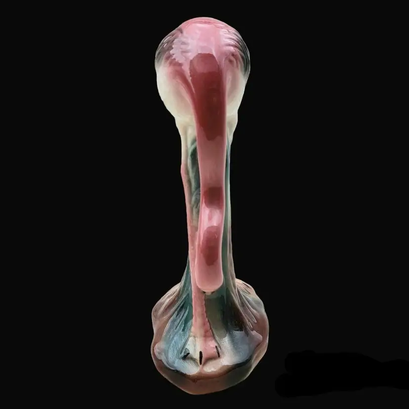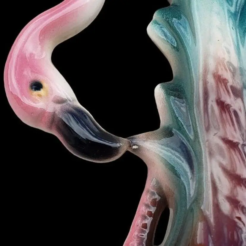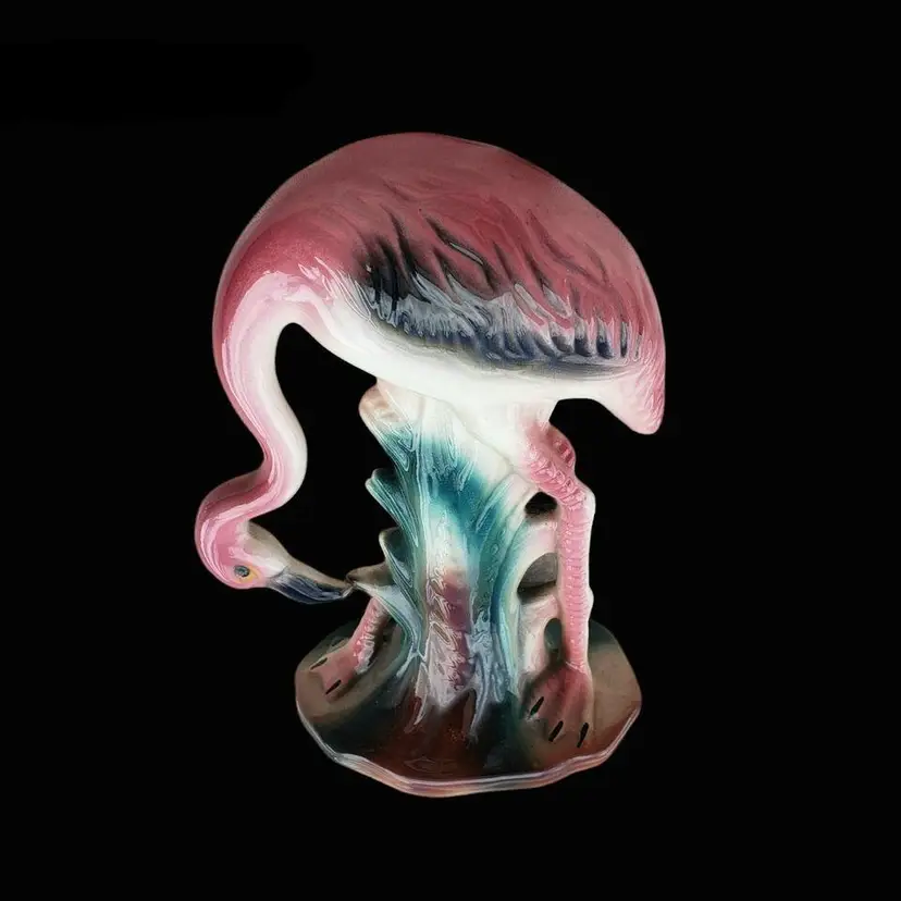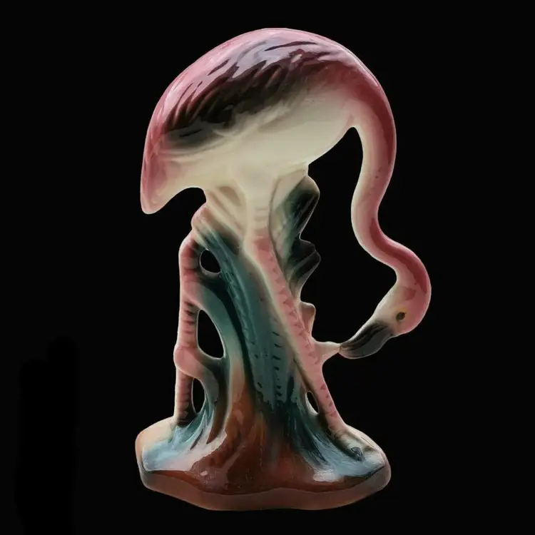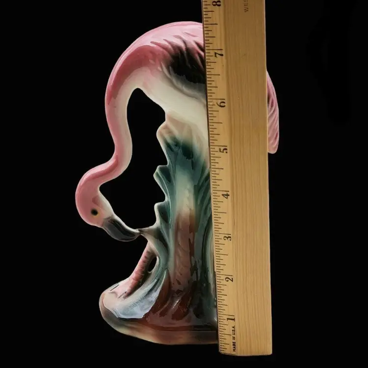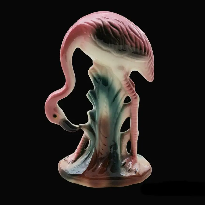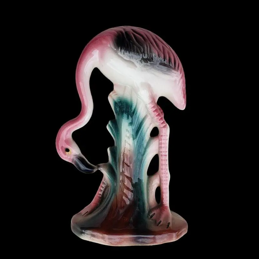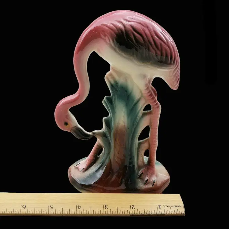 Vintage Pink Flamingo Figurine Bending Down Feeding MCM Décor Unbranded 7½" Tall approximately. Condition is used with dirt, sticker residue, scratches, missing glaze, etc.