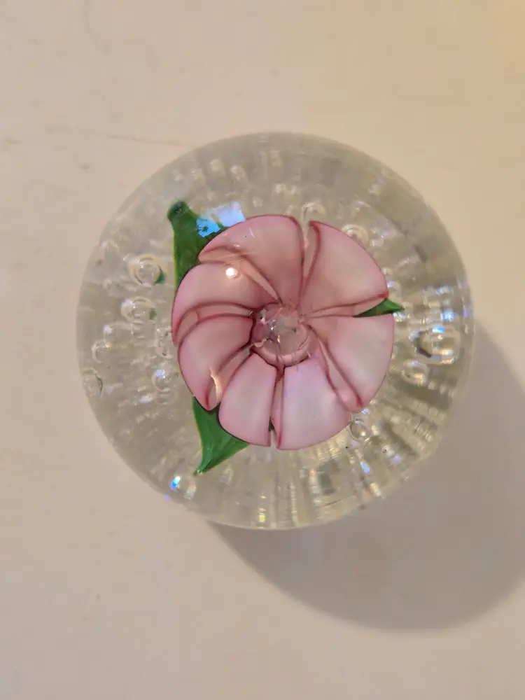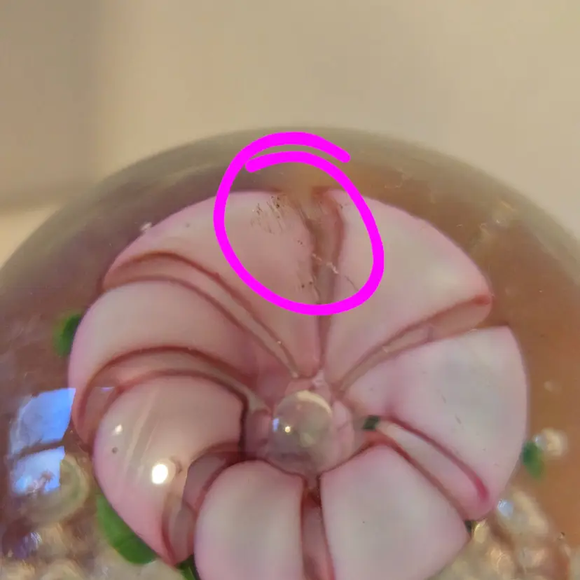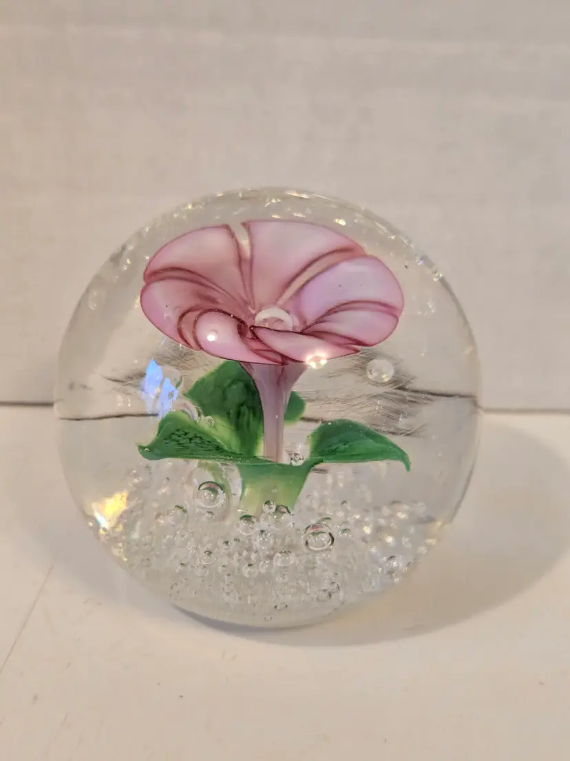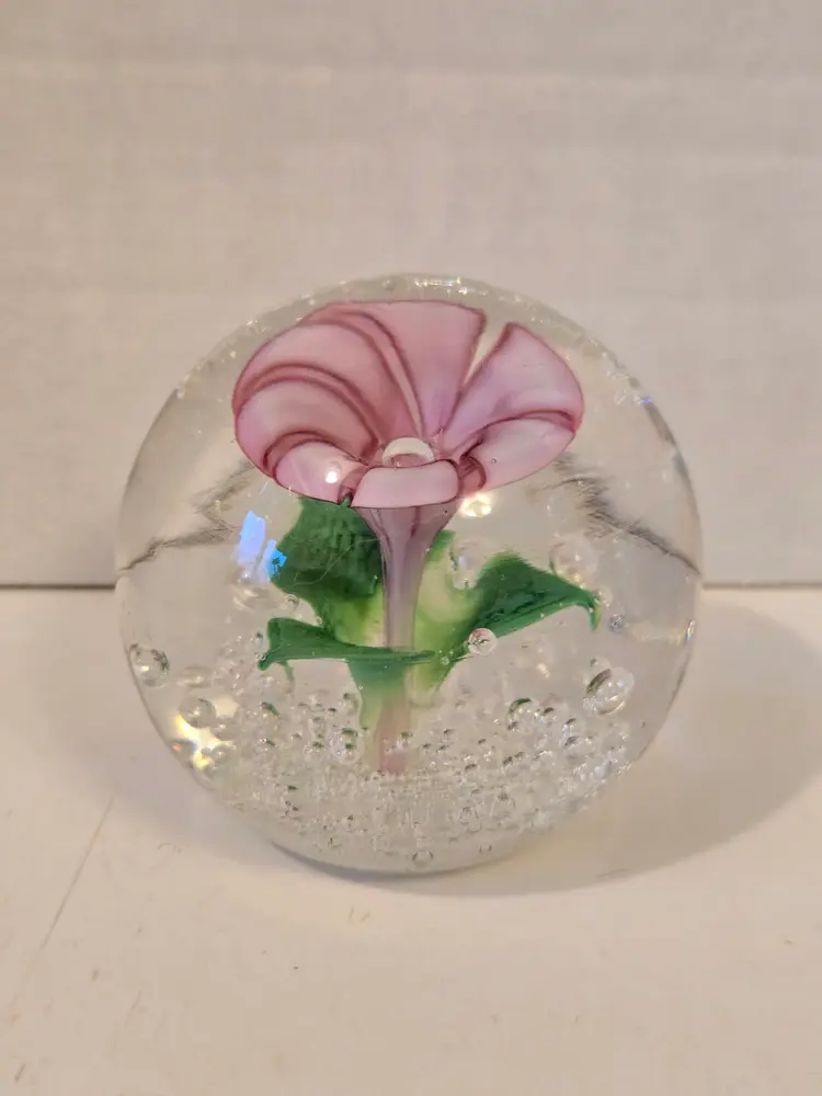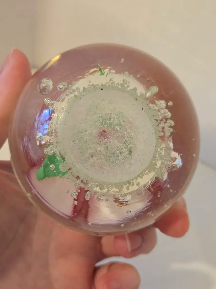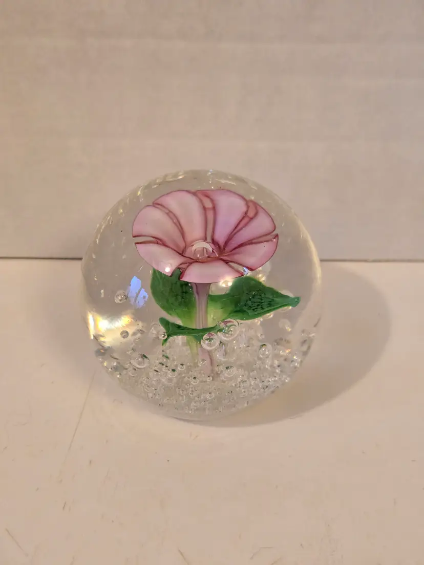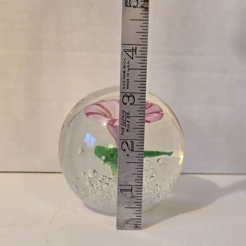 This paperweight measures approximately 3.25 inches tall. There is a scuff near the top, please see last photo.