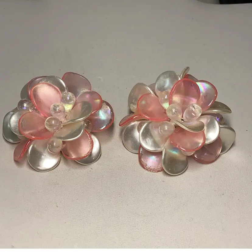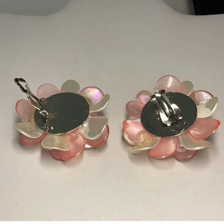 Pink Flower Clipon Earrings - 1 1/2” - Lightweight