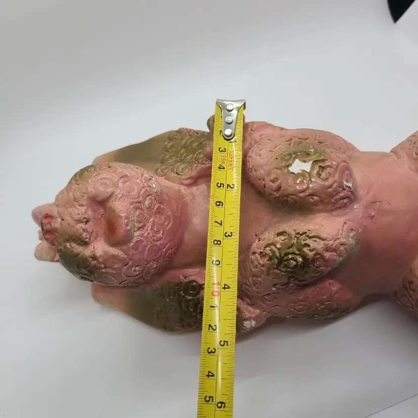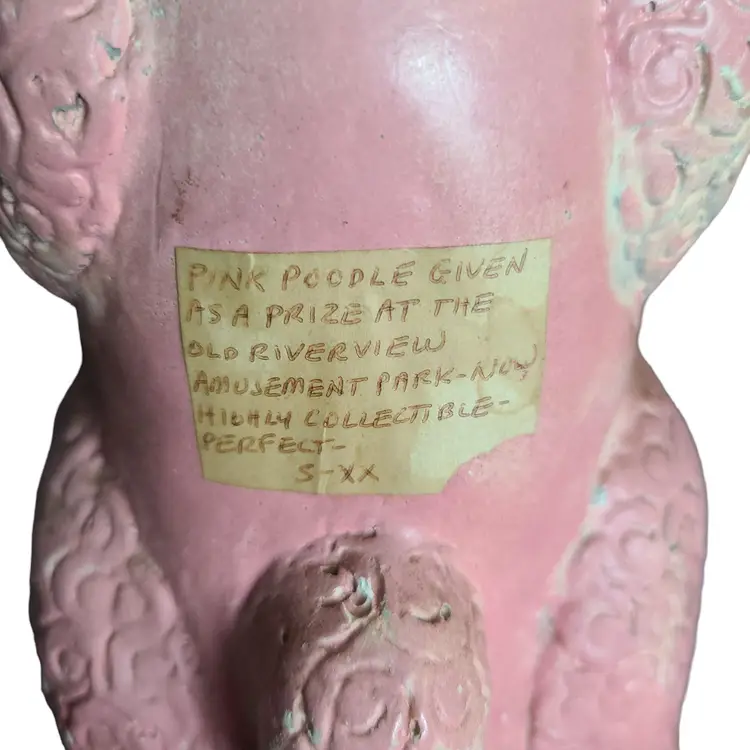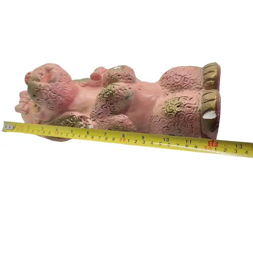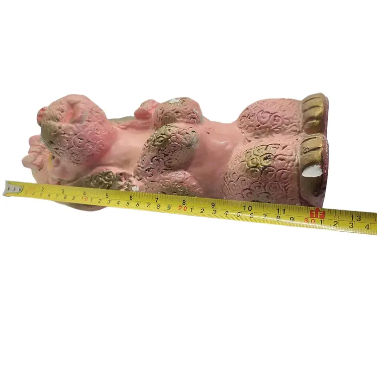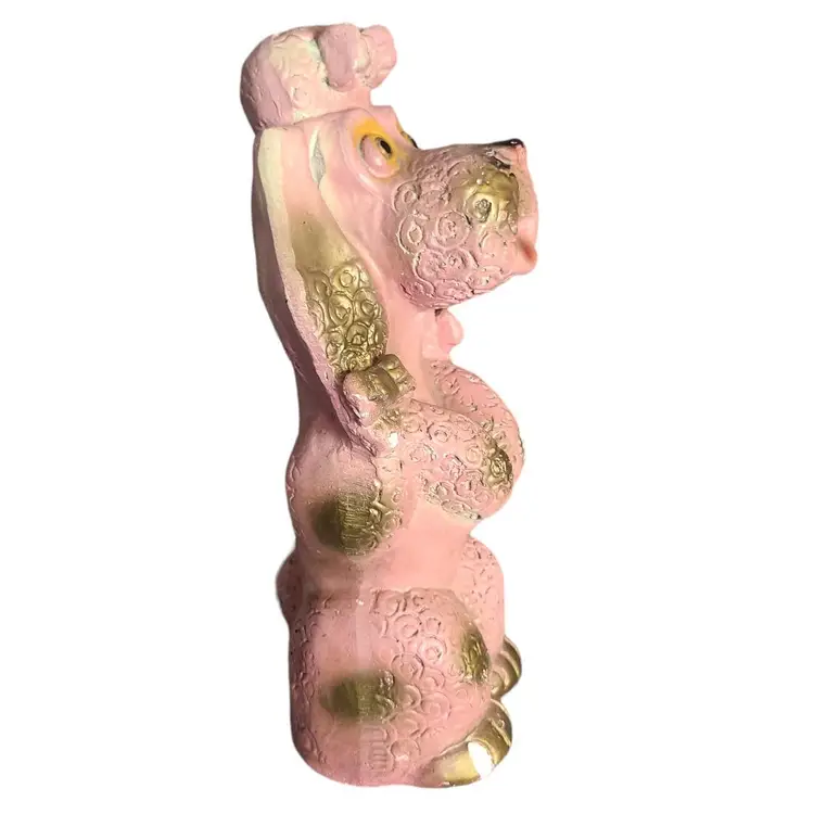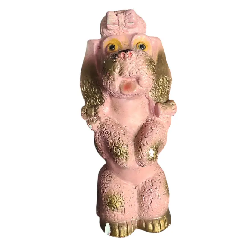 Pink & Gold Poodle Dog Chalkware Figure Retro MCM Large 12"