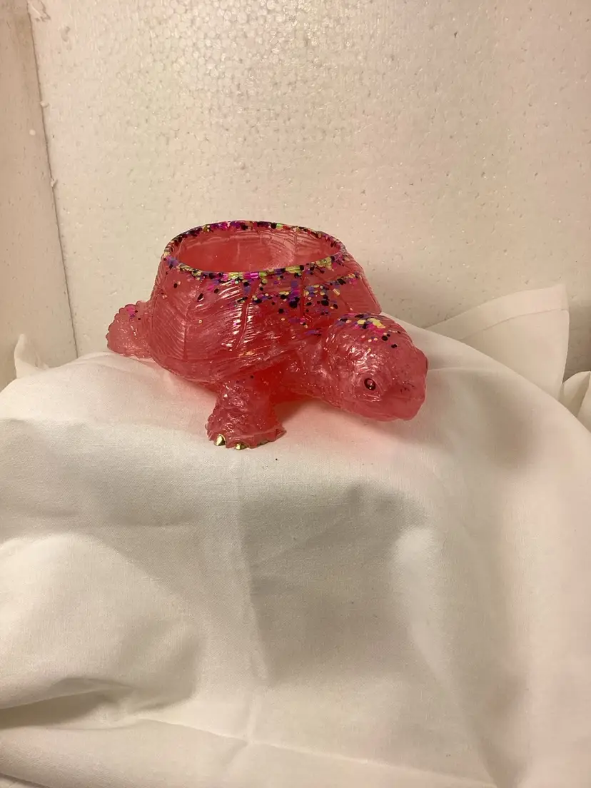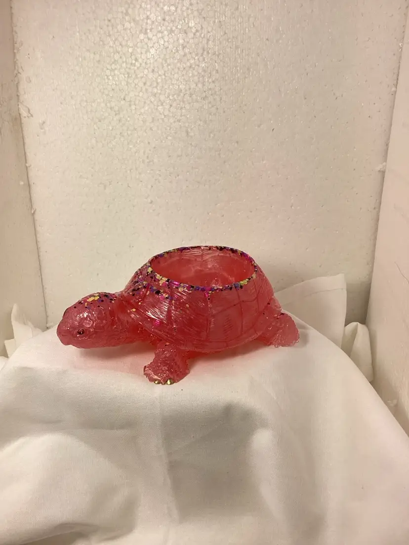 Pink planter turtle 6 1/2 inches long 4 1/2 inches wide and 2 inches deep. Can be planter or candleholder.