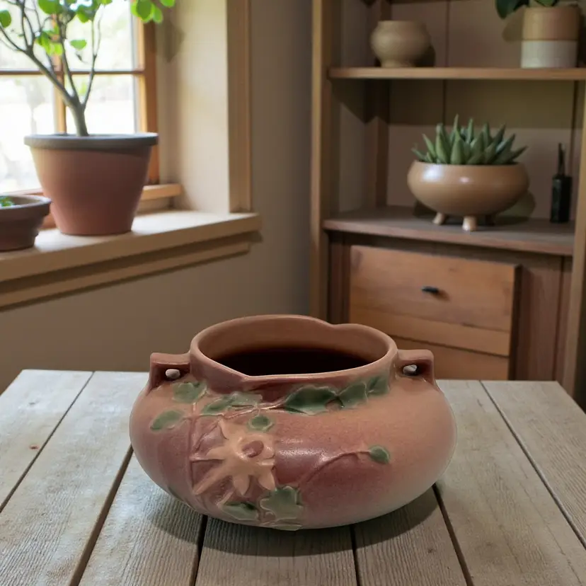 Bring timeless charm to your home with this authentic Roseville Columbine planter in soft matte pink. This vintage Art Deco pottery piece (shape 655-3) features delicate columbine flowers and classic lines—perfect for collectors, cottagecore enthusiasts, or anyone seeking a unique floral accent.