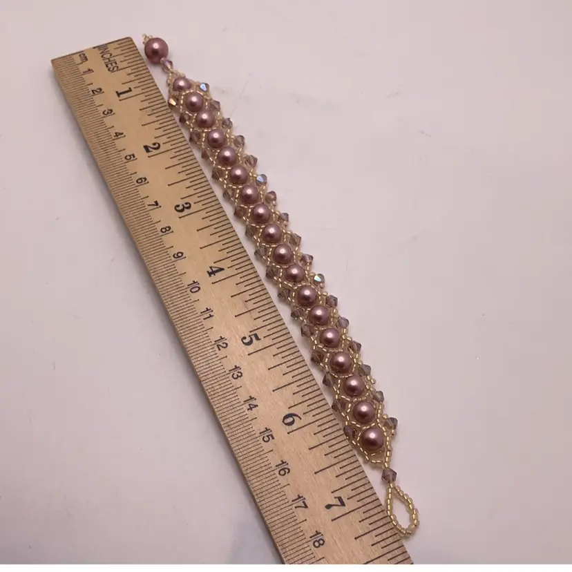 Pink Swarovski Crystal & Pearl Bracelet with Pearl Toggle Artisan Made 7”