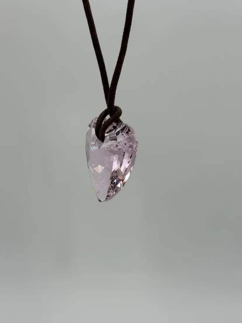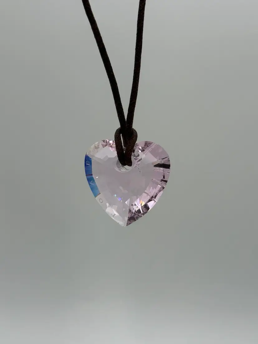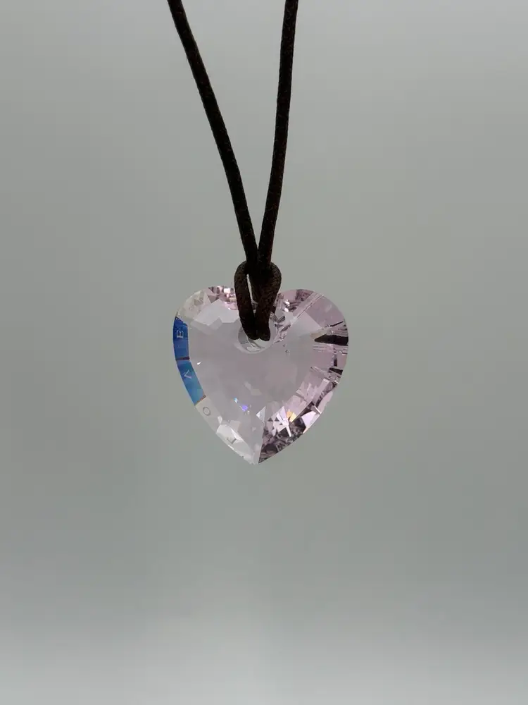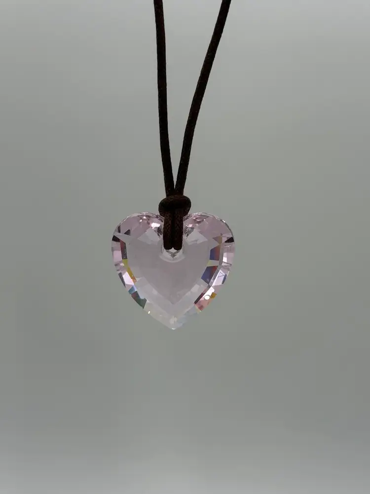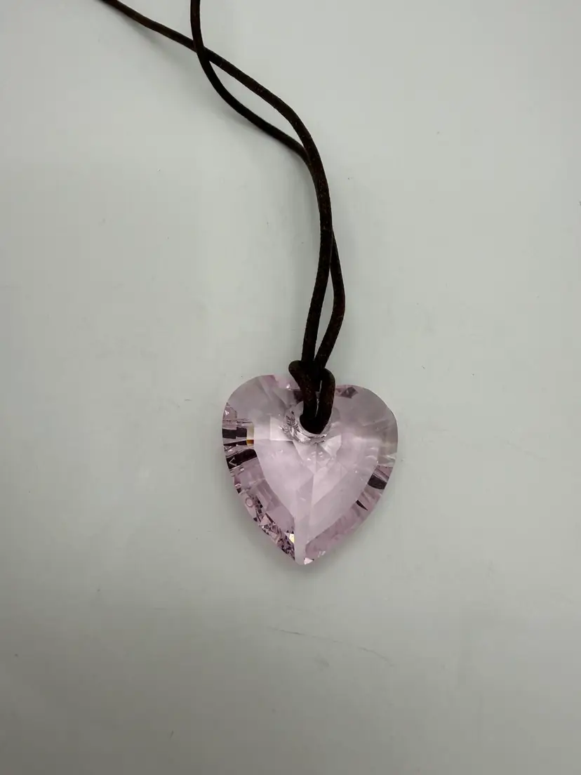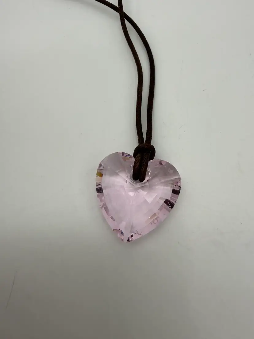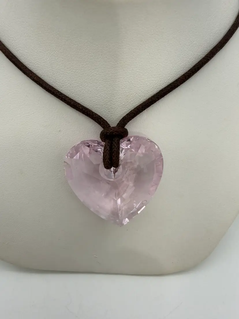 This vintage Swarovski crystal heart pendant necklace features a 1-1/4” X 1-1/4”pink glass/crystal main stone with the word "LOVE" engraved on the side. The pendant is in the shape of a heart and is simulation-made, with a slide closure and adjustable 24" corded neck. Perfect for all occasions like Mother's Day, anniversaries, birthdays, and Valentine's Day, this reversible and personalized piece is a beautiful and heartfelt accessory for any jewelry lover looking for a unique and elegant piece.